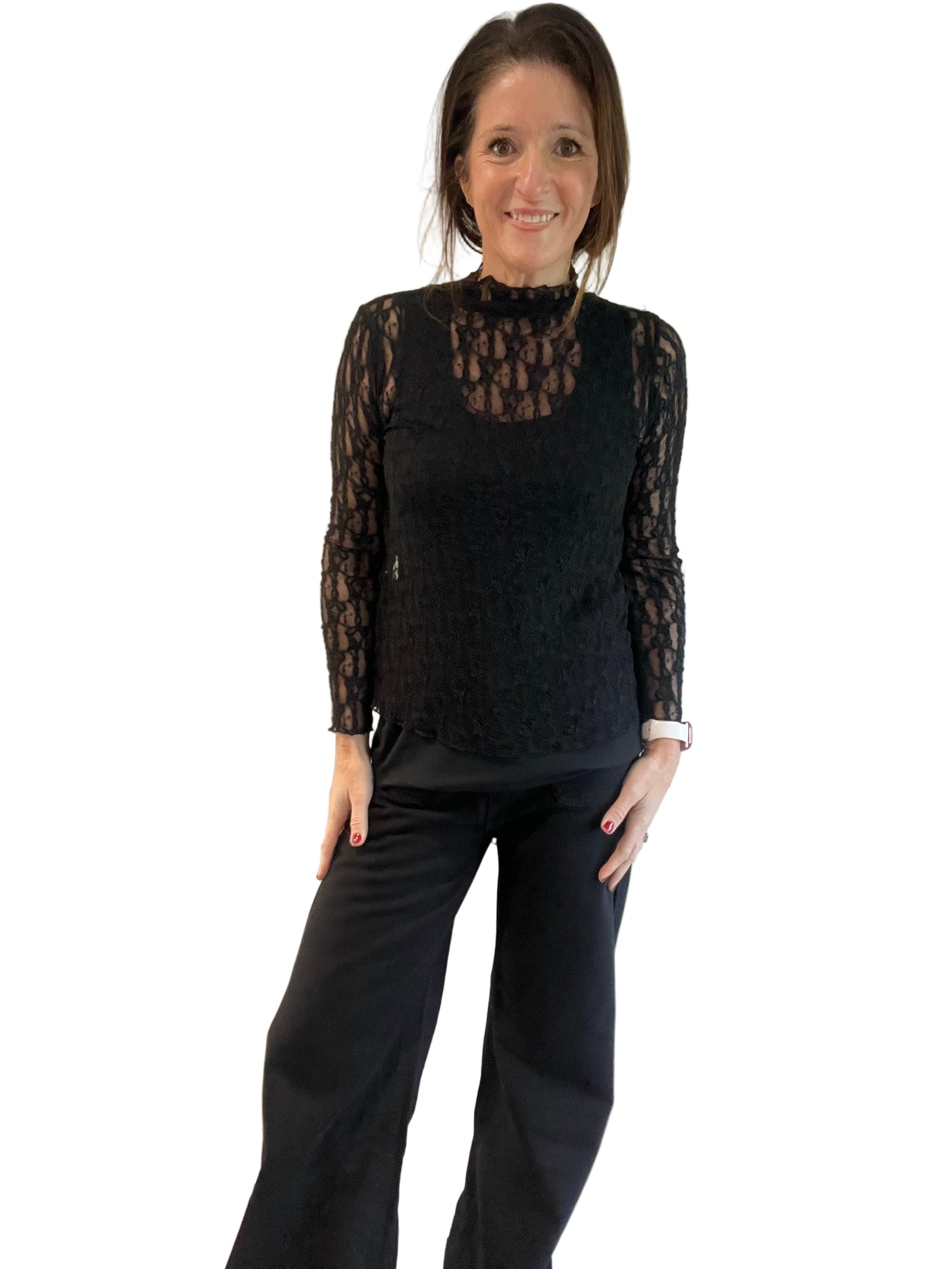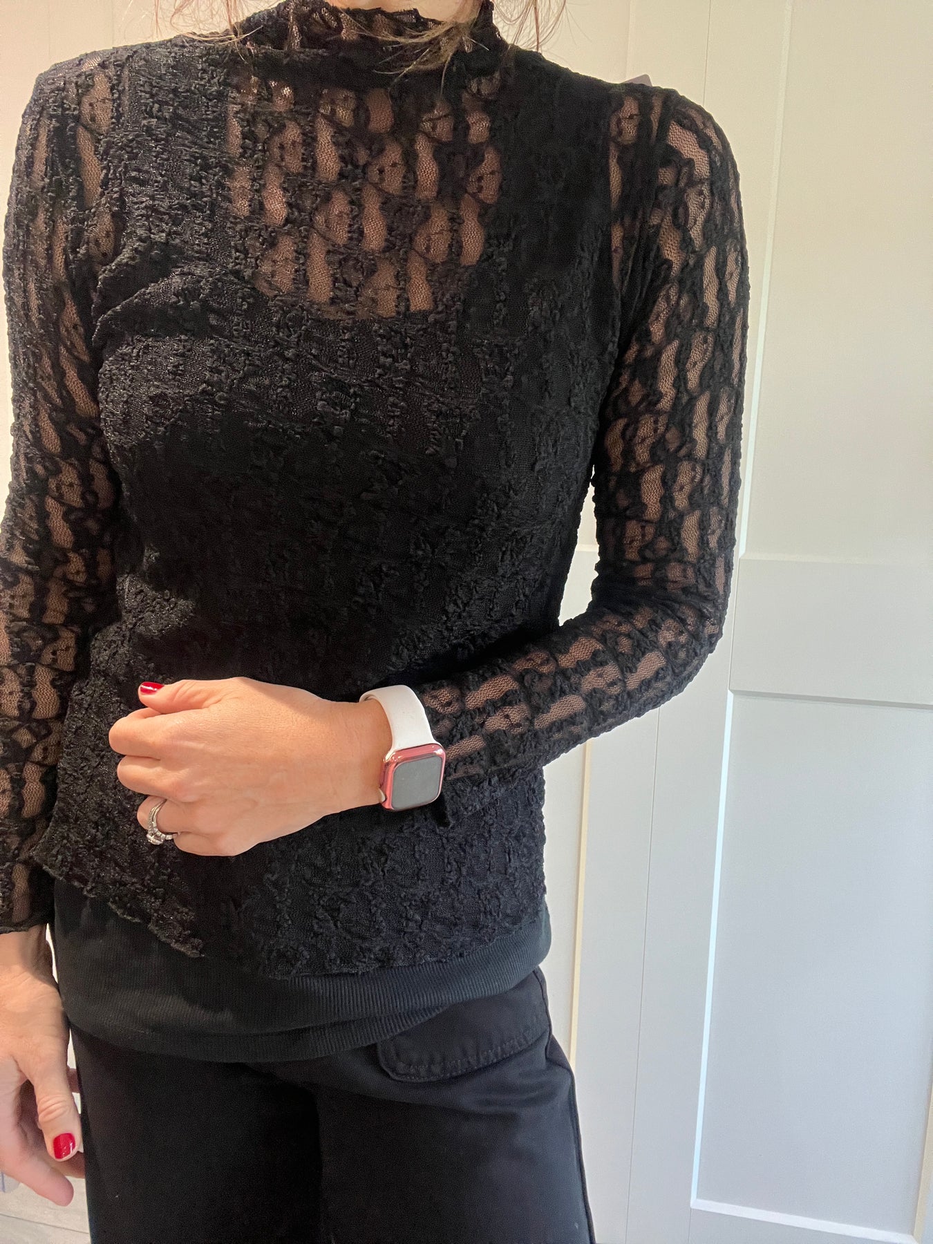 Elevate your your layering tops with this lace one, perfect under a jumper to give a glamorous finish on the cuff & neck