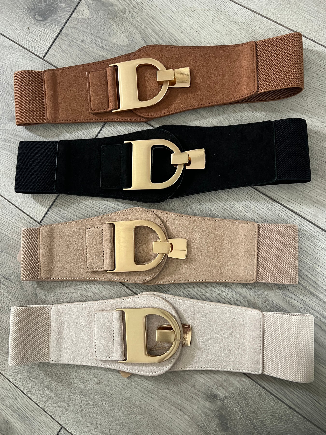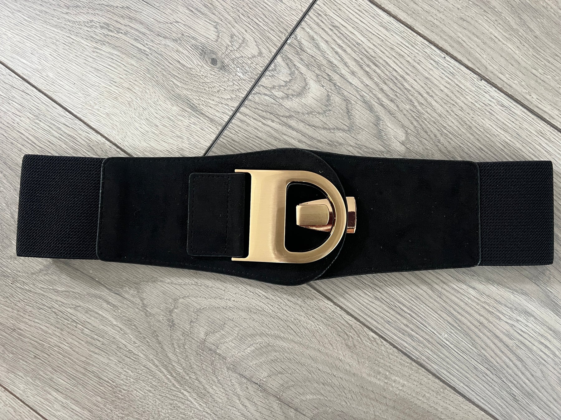 This is a striking waist cincher belt that stretches according to your size (up to size 14) and won't pop due to the hook fastening (rather than popper)
