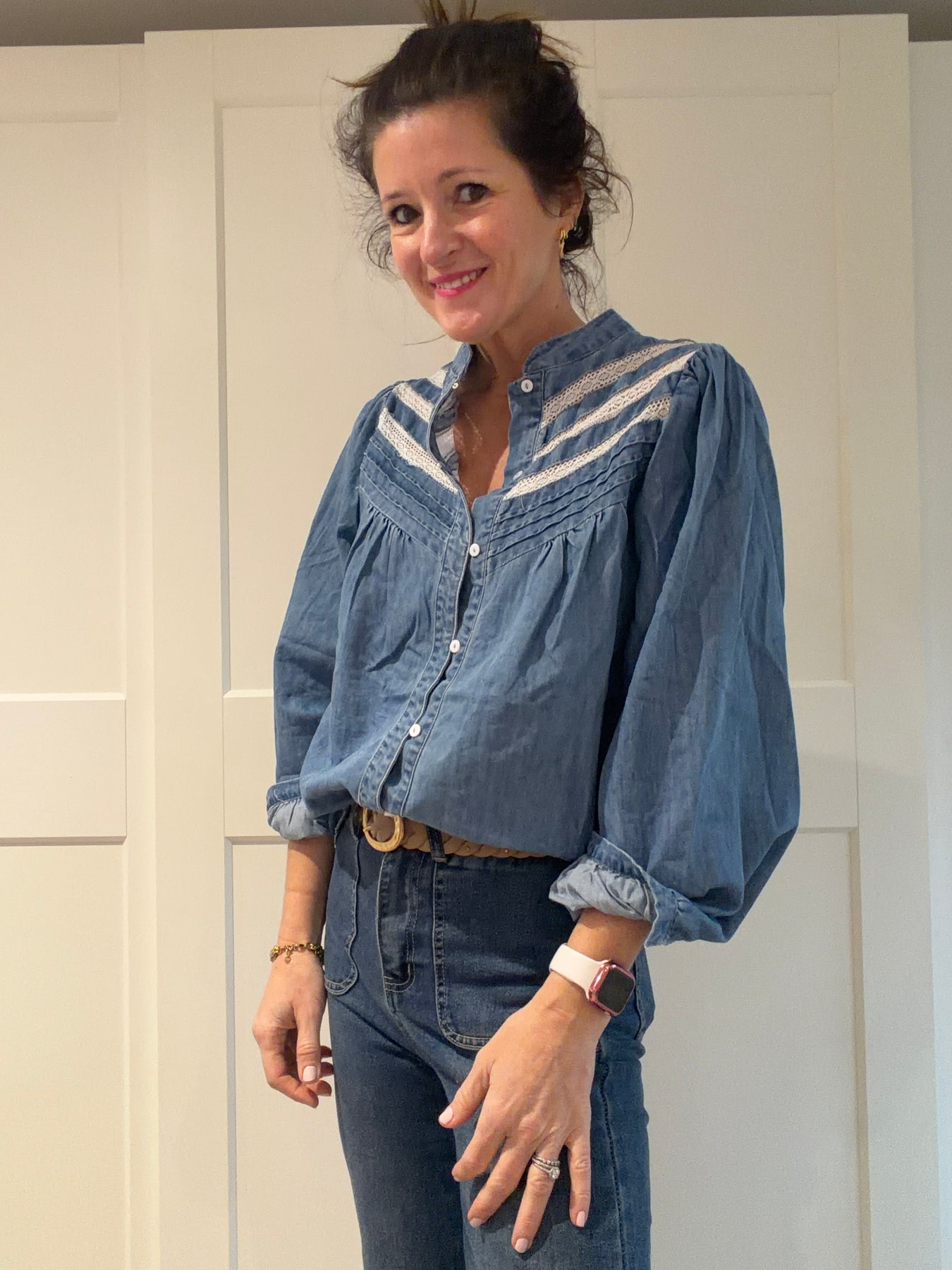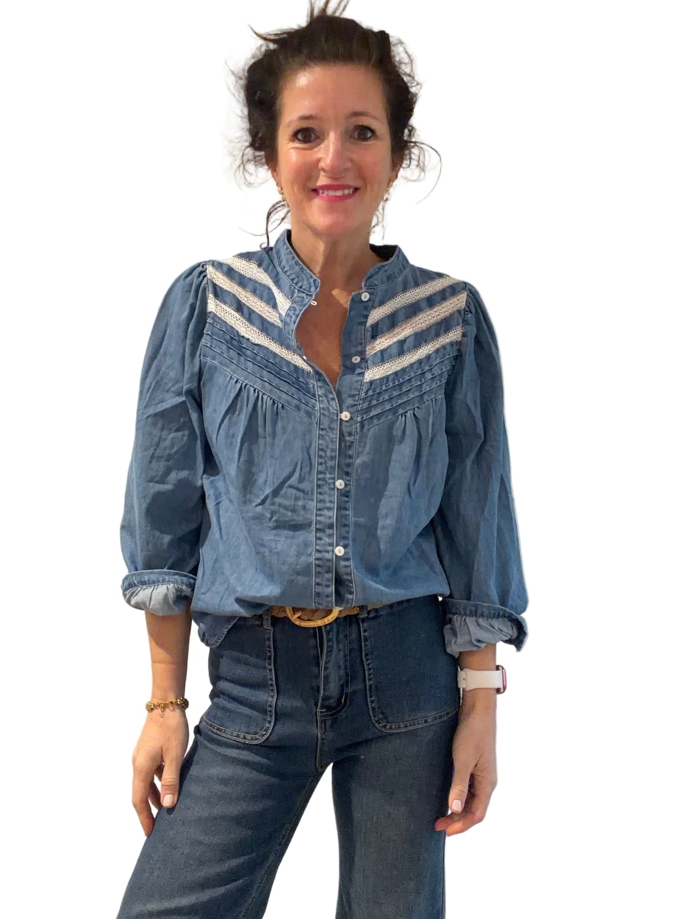 Denim Blouse with Broderie Detail