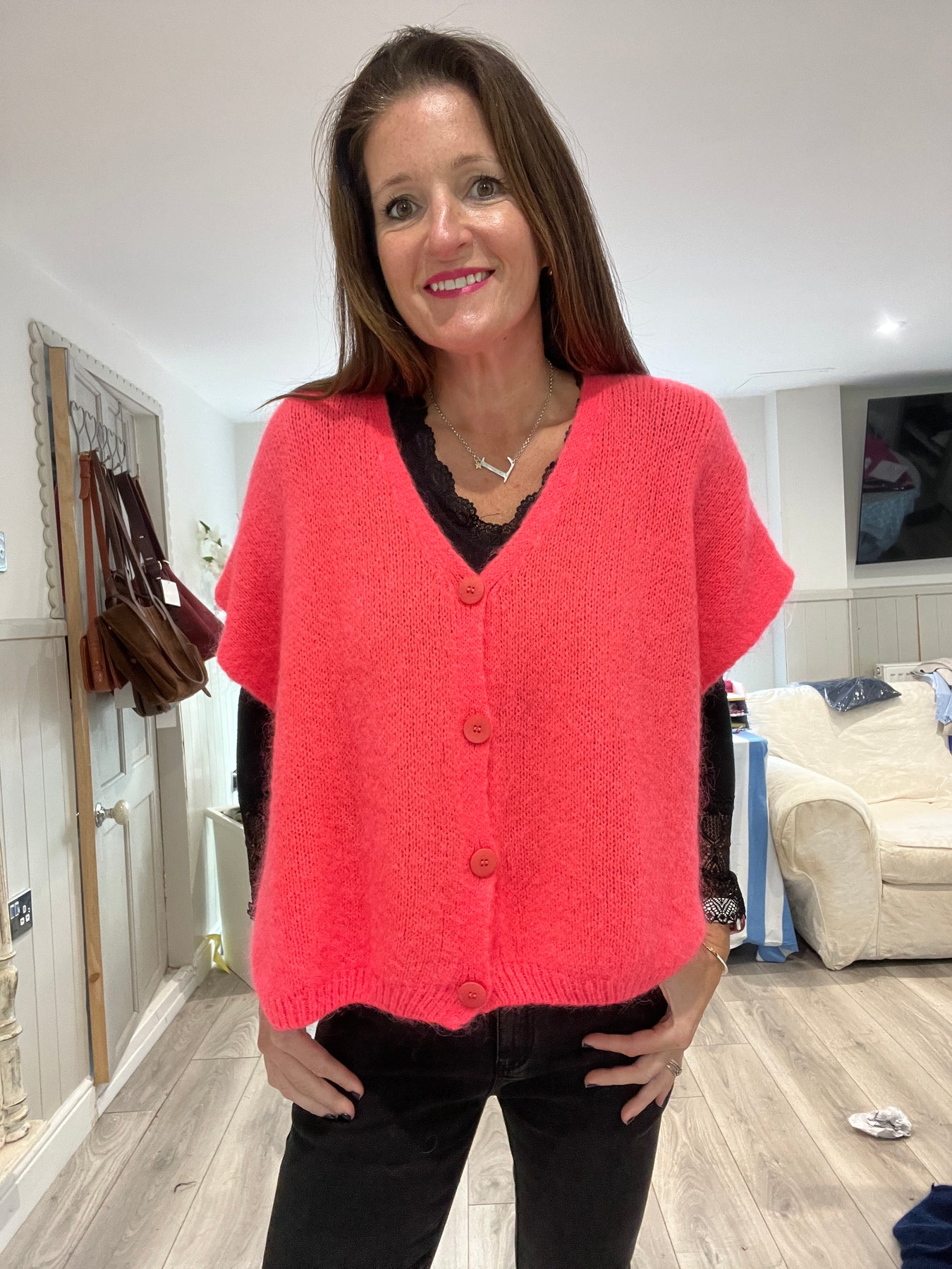 An easy cardigan to wear with anything. Classic length and shape with short sleeves and a v neck make it a colourful wardrobe staple year after year