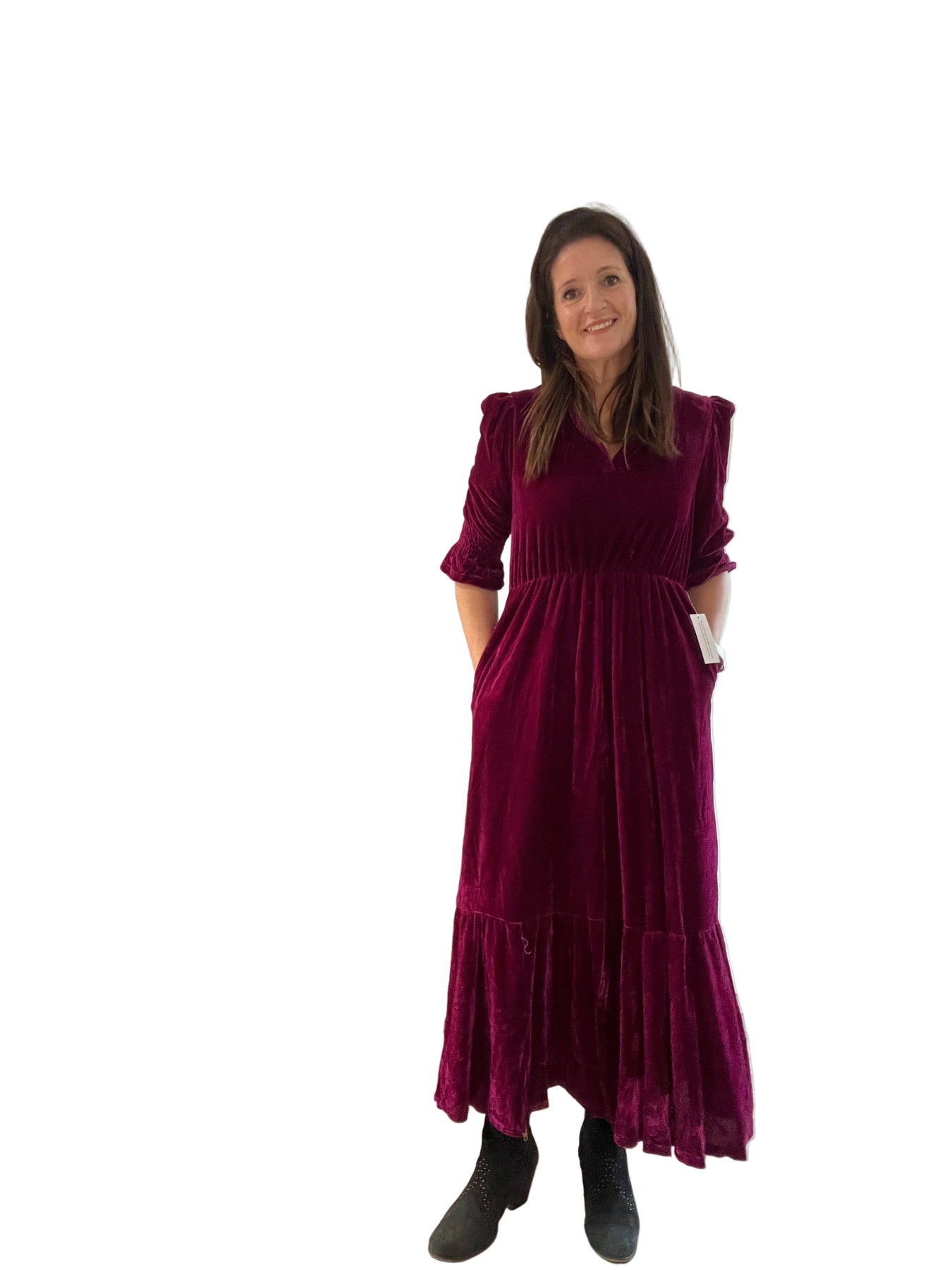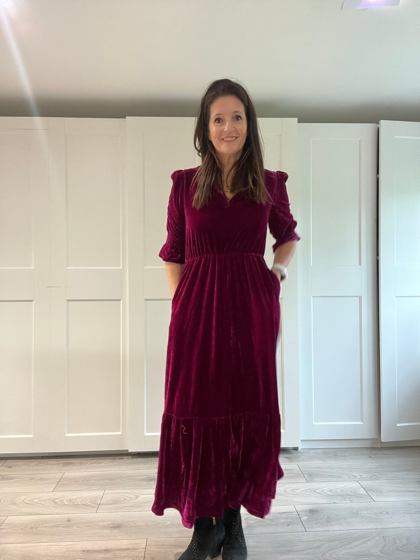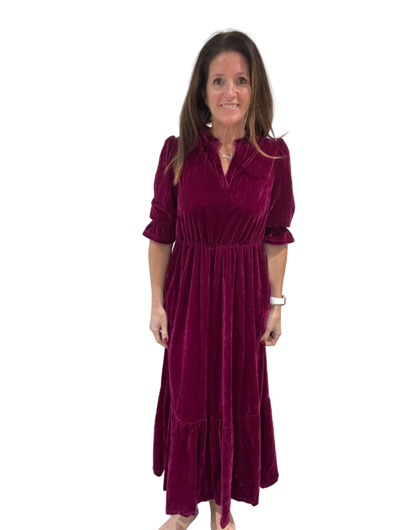 This gorgeous elbow length tiered maxi dress is perfect Christmas Day or a Christmas party