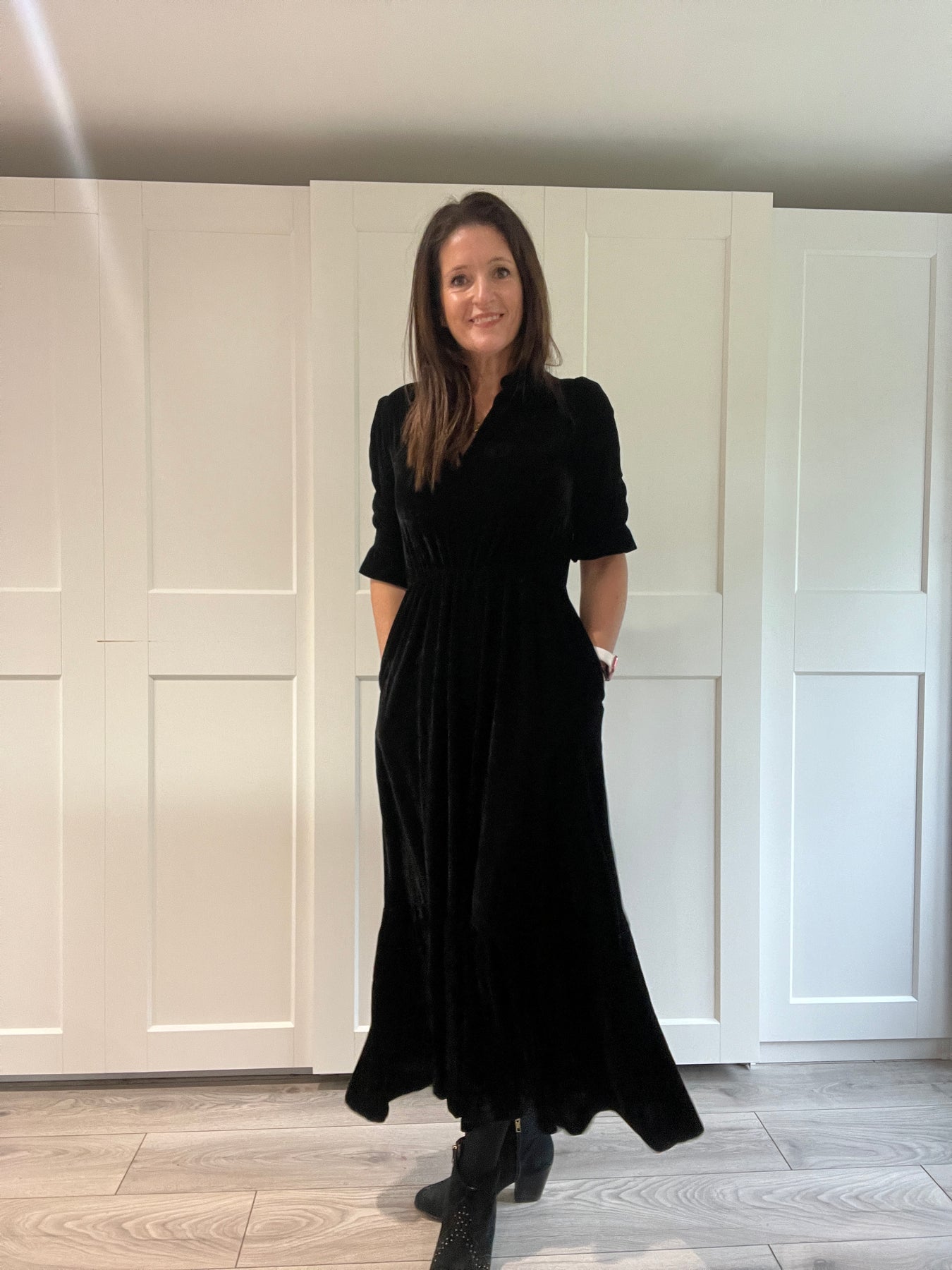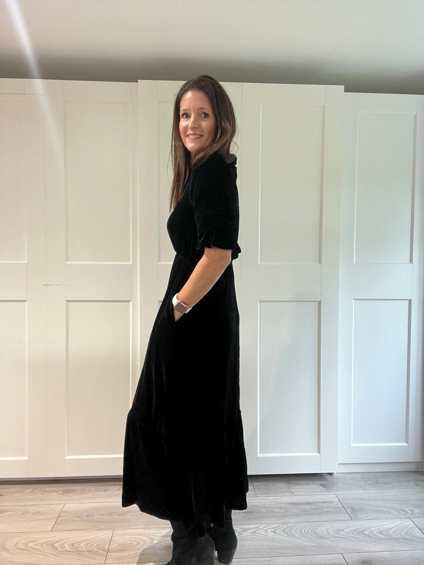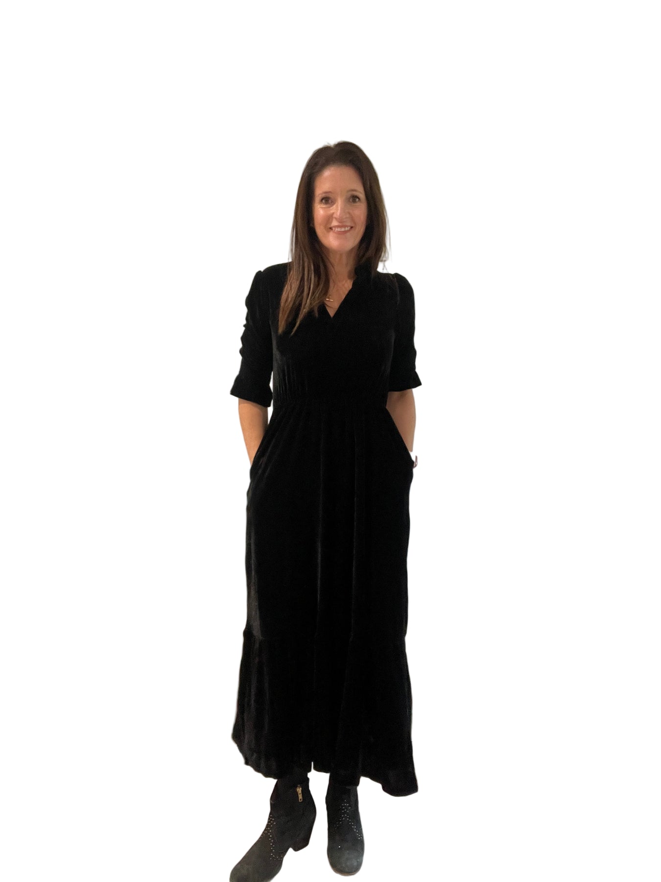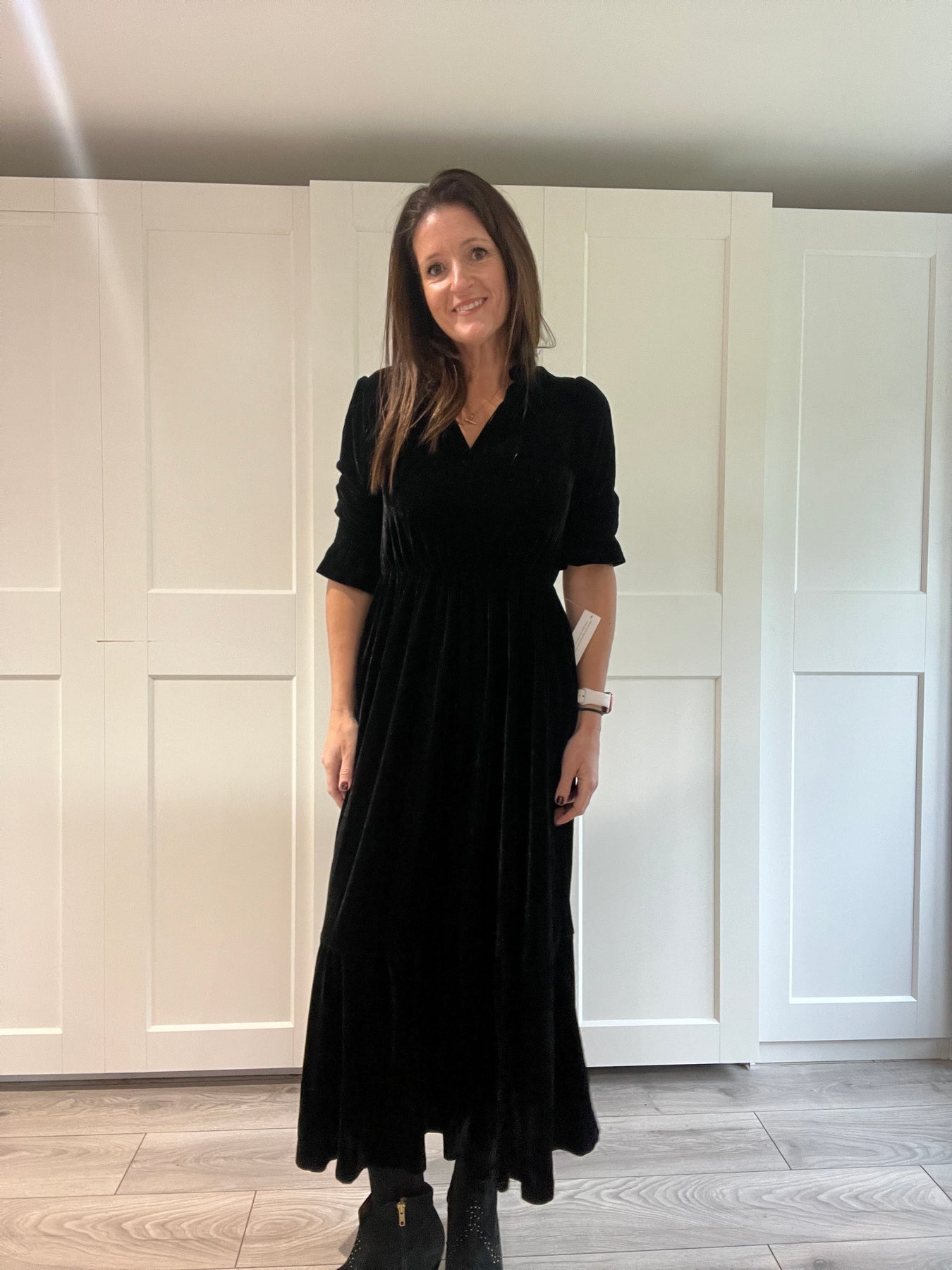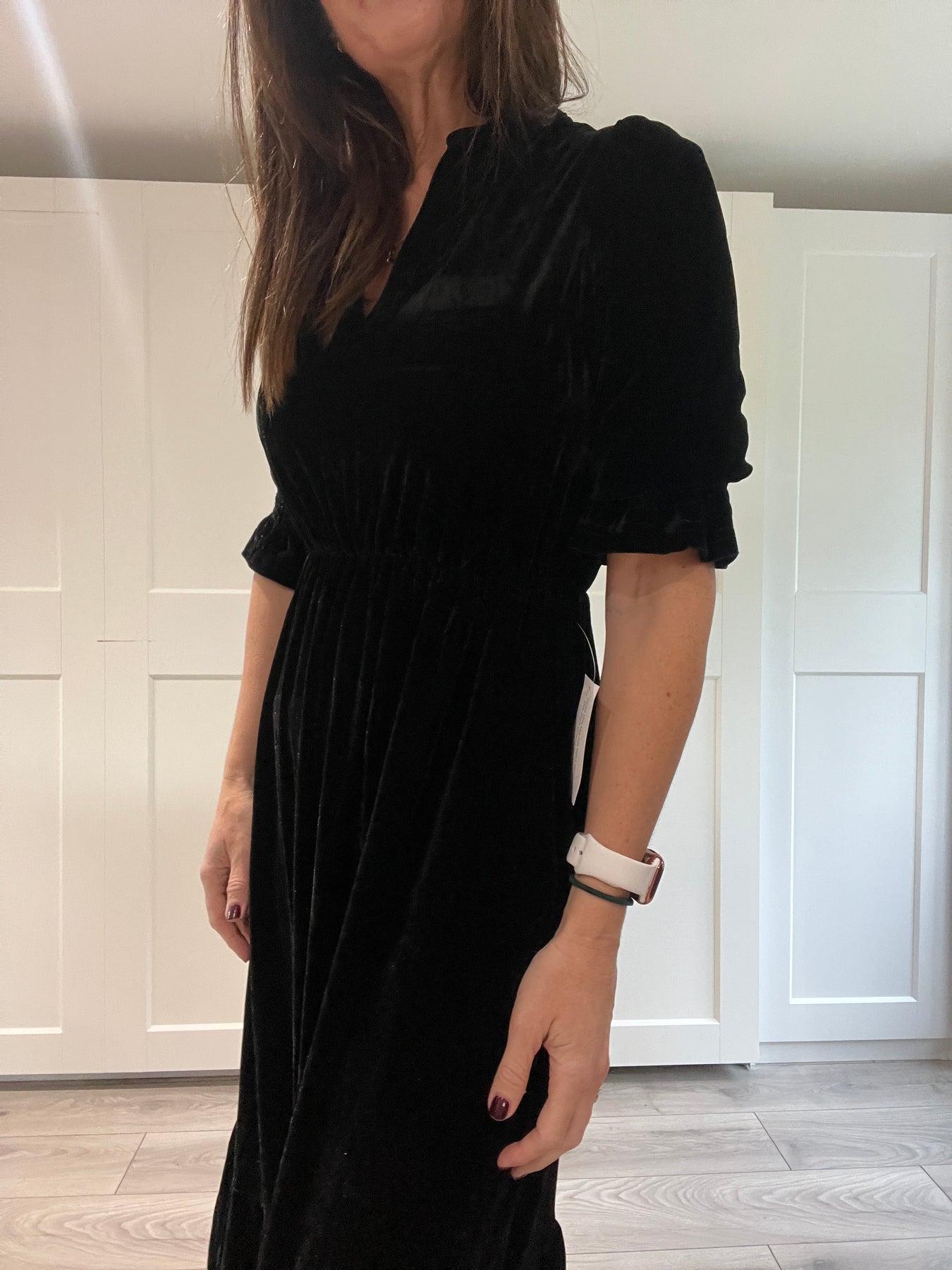 This gorgeous elbow length tiered maxi dress is perfect Christmas Day or a Christmas party