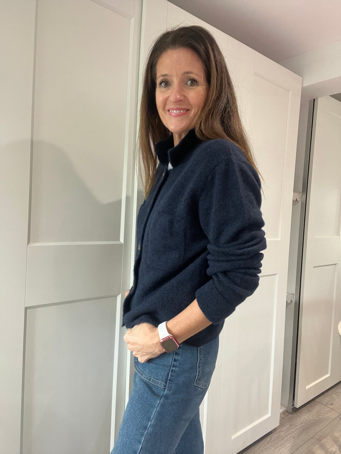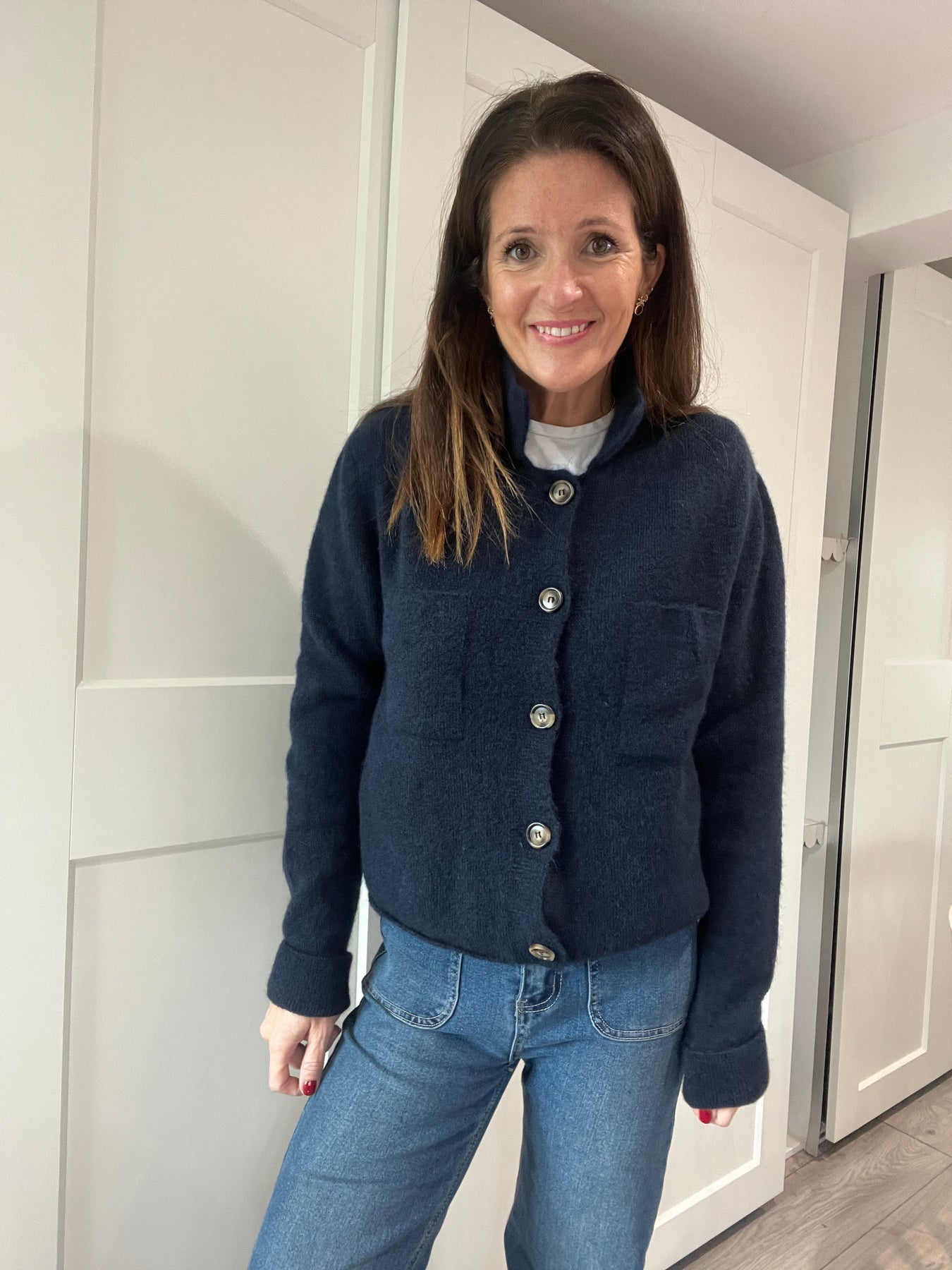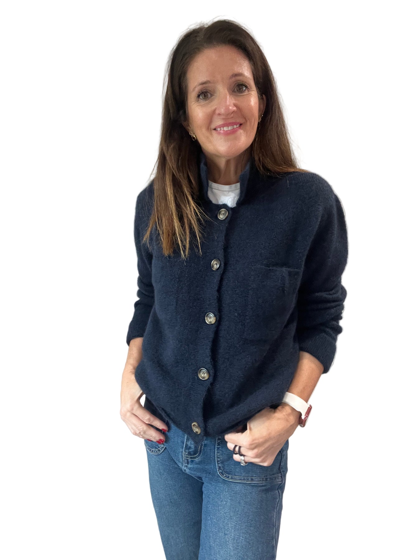 Elevate your style with the practical and versatile LEVALIE navy cardigan to bring an extra layer of warmth