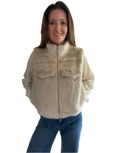 Cream Faux Fur Pocket Gilet - 2 sizes