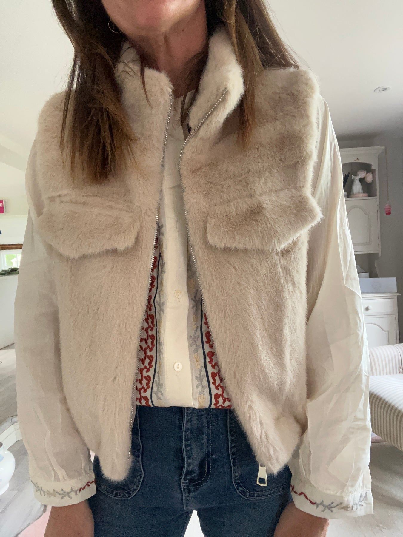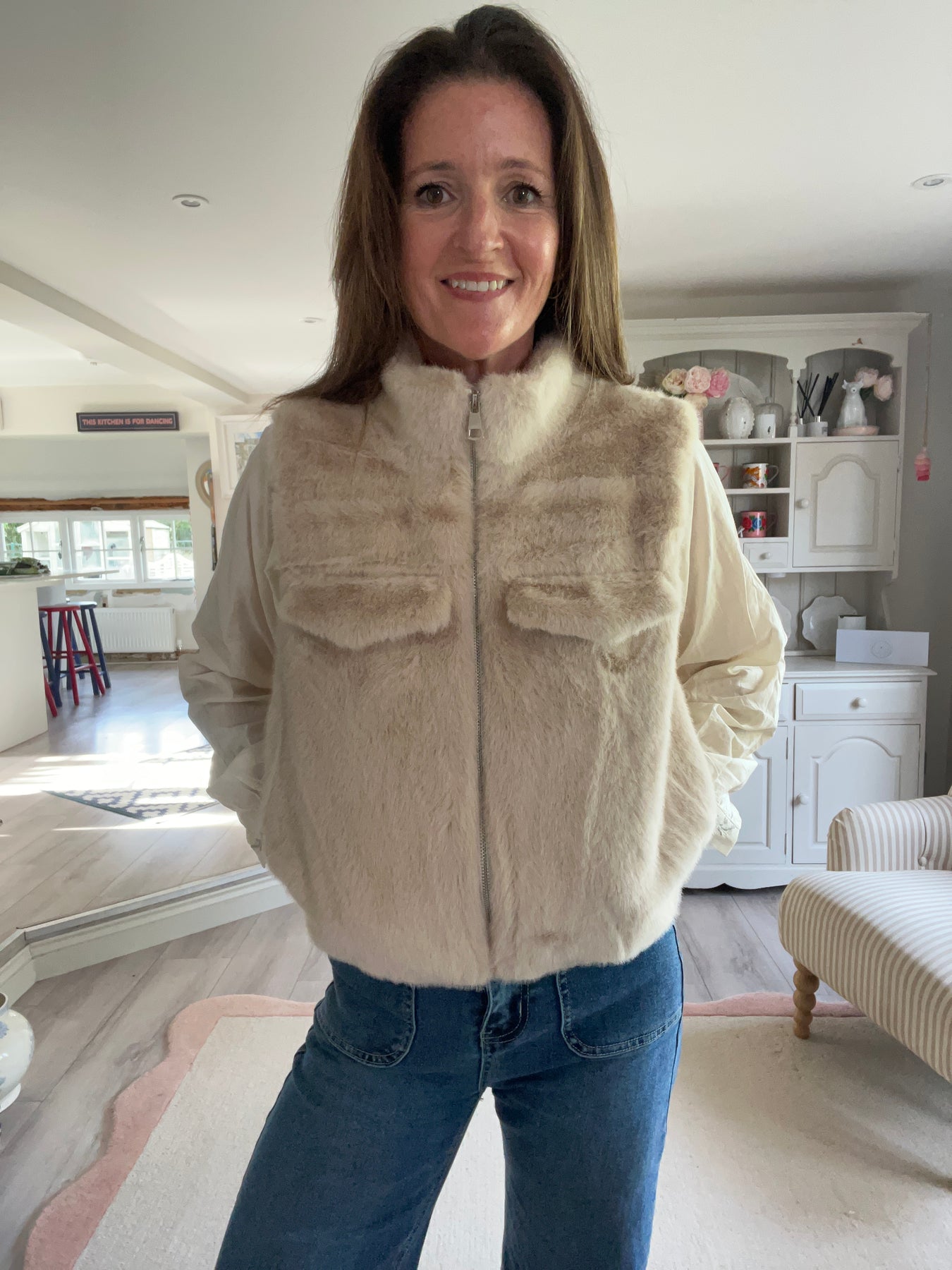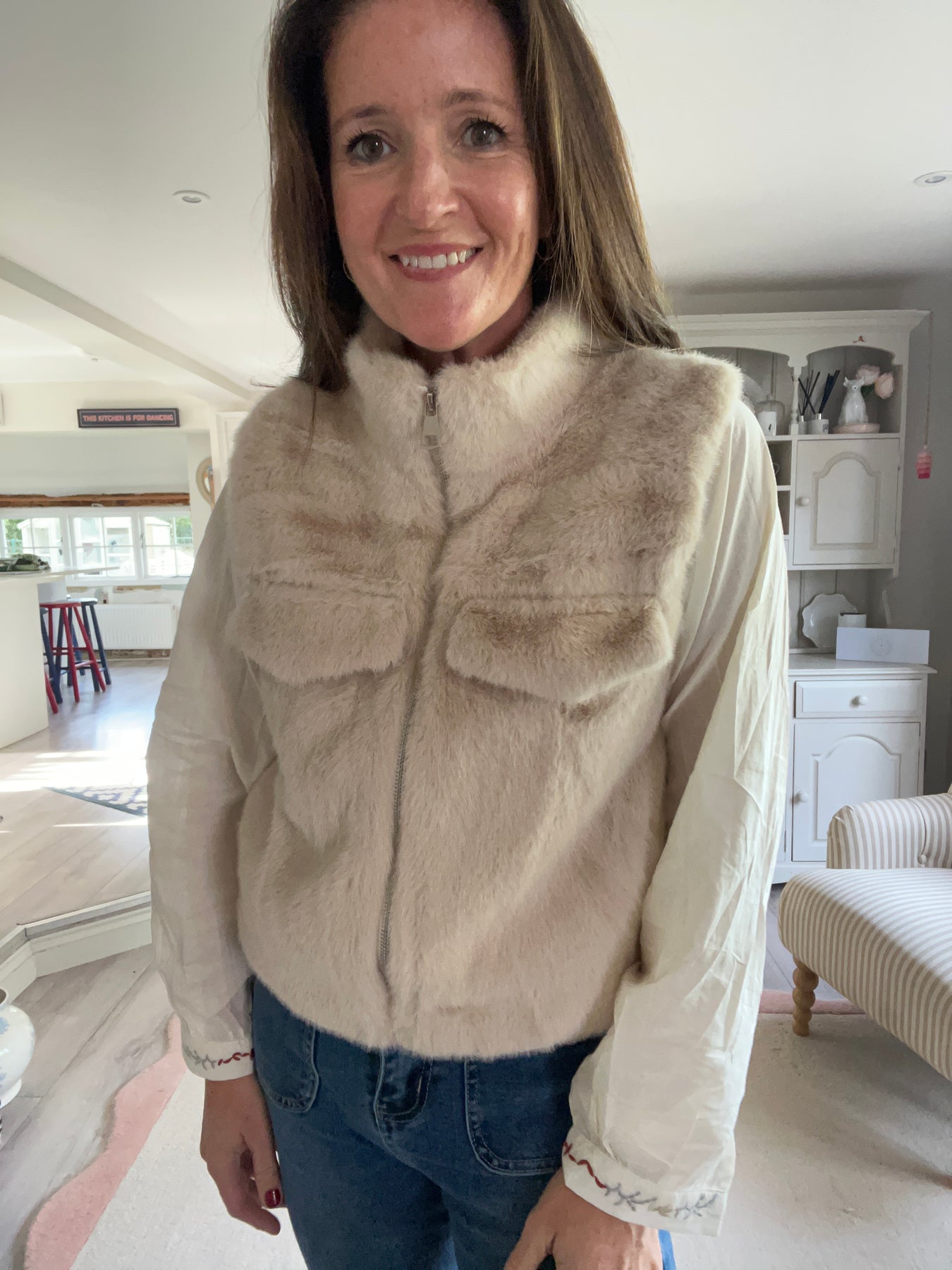 Cream Faux Fur Pocket Gilet - 2 sizes