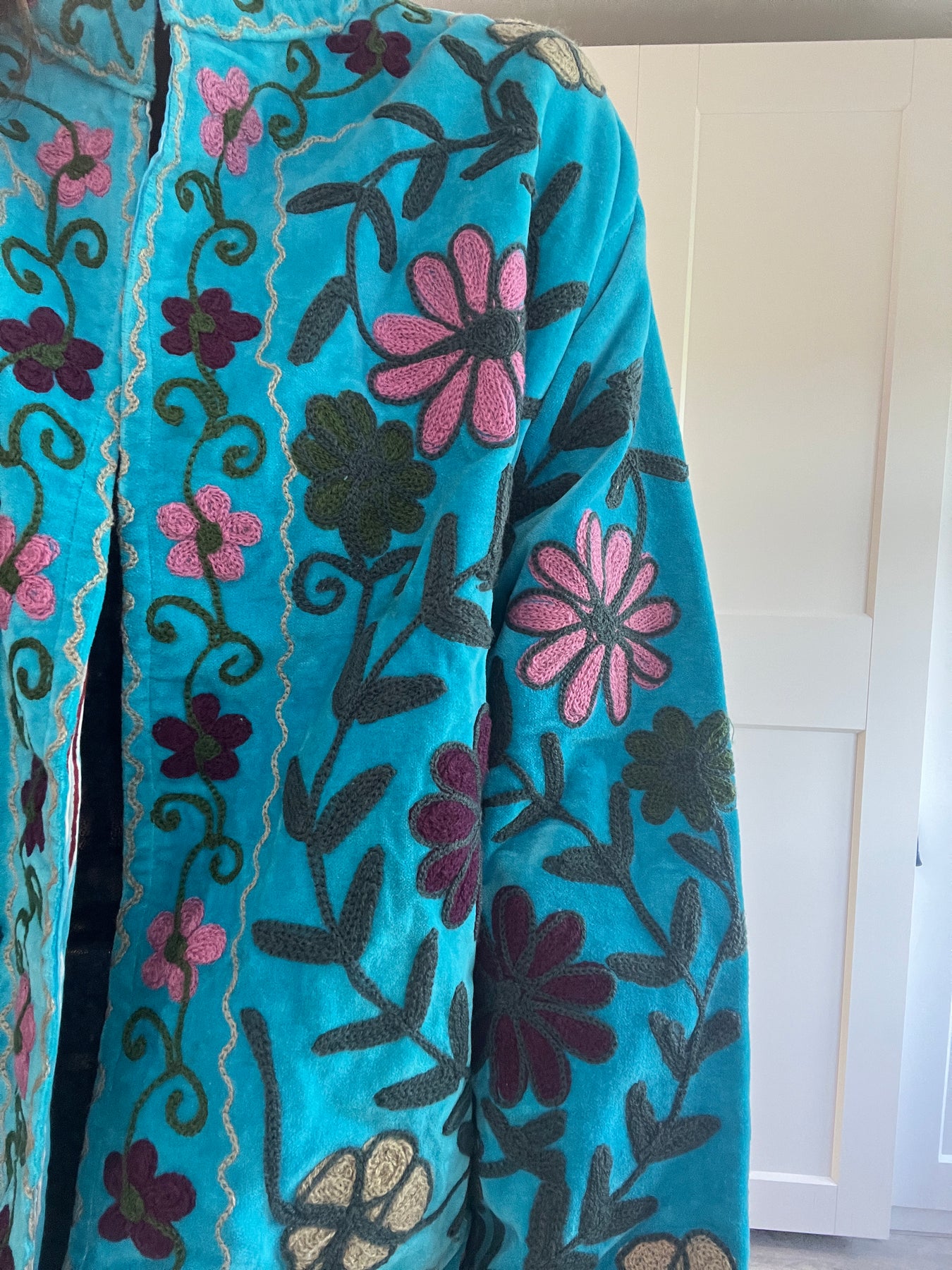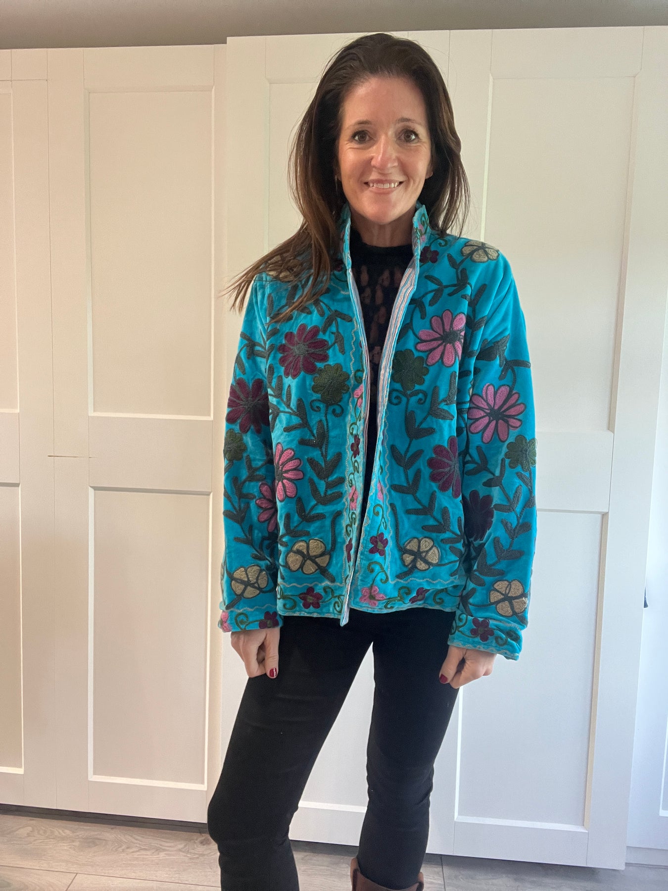 Discovered on my recent trip to India, these Suzani Jackets were personally chosen for my customers for their exquisite craftsmanship and timeless appeal. Each jacket is hand-embroidered by skilled artisans in Jaipur, showcasing intricate traditional Suzani motifs that make every piece truly one of a kind.