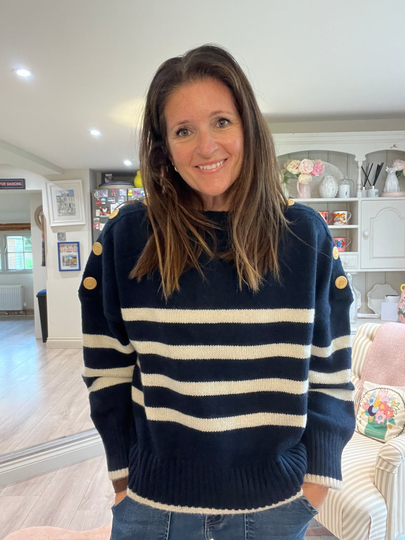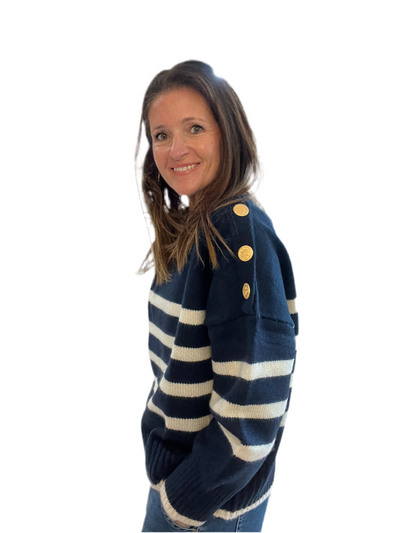 Get ready to elevate your casual wardrobe with the Lotefi Marine Stripe Jumper!