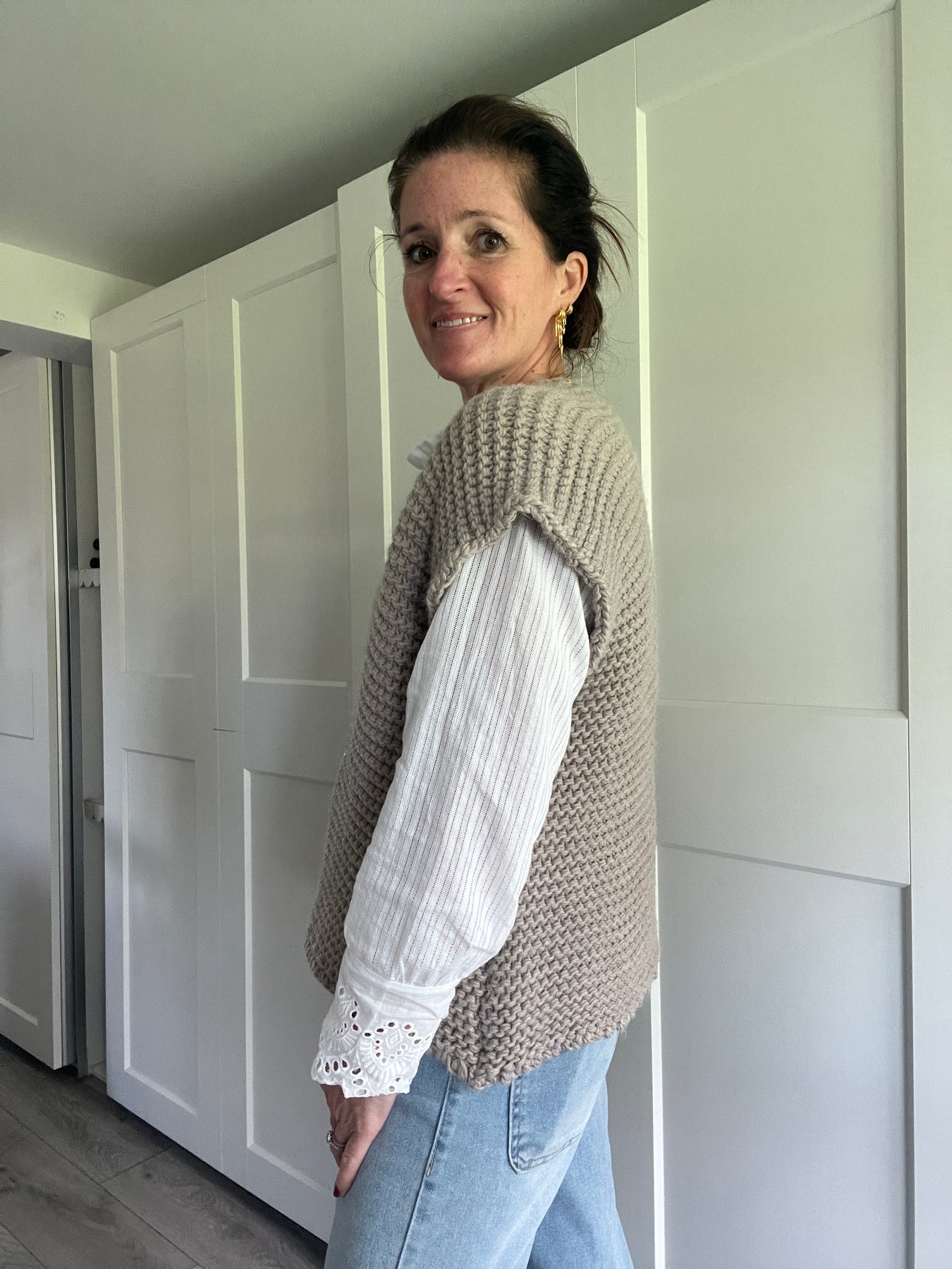 A cosy sleeveless knit to wear over a blouse to keep you warm and elevate your outfit.