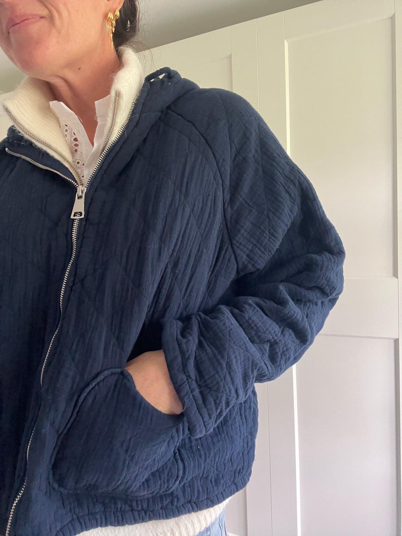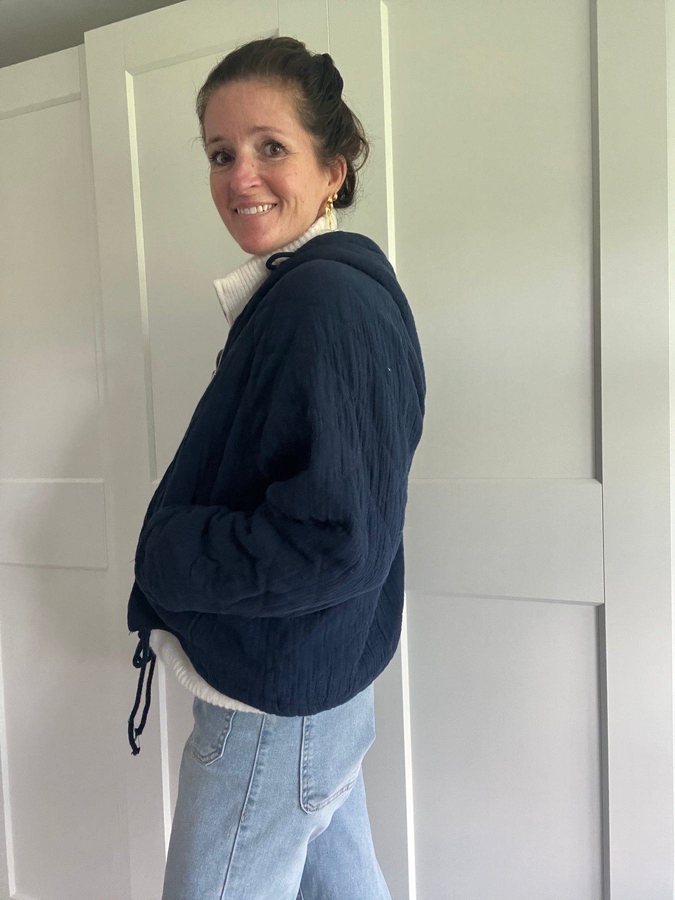 An easy throw on jacket in 100% cotton to wear under an overcoat or on its own