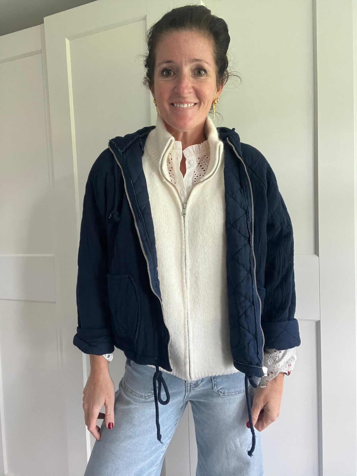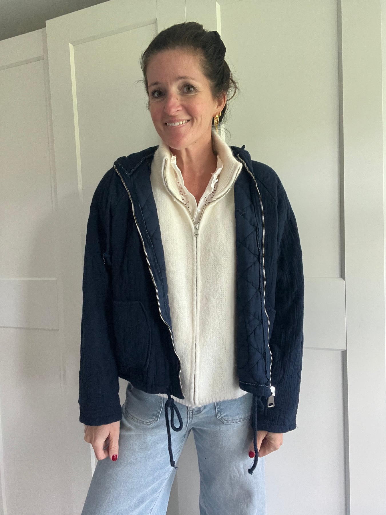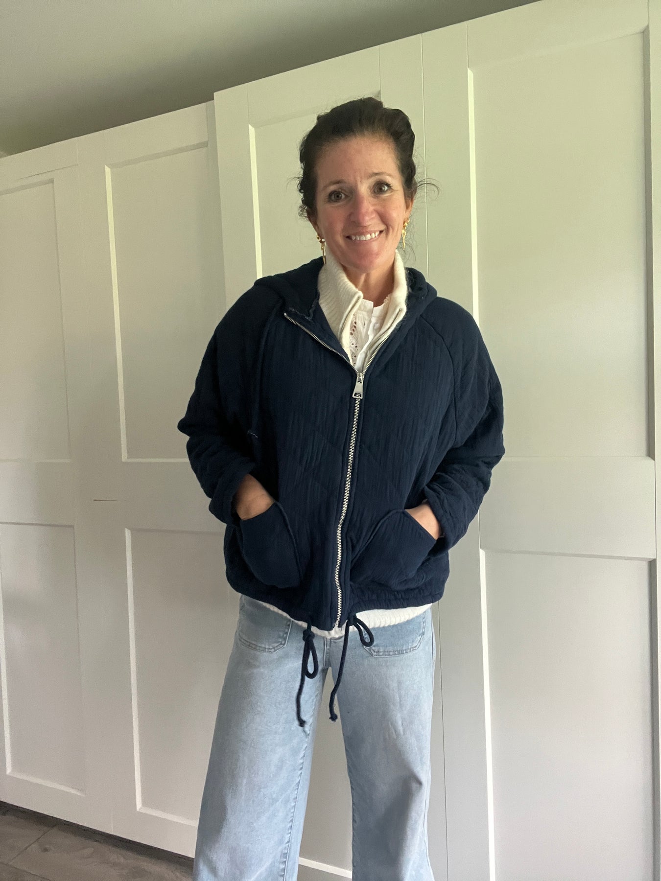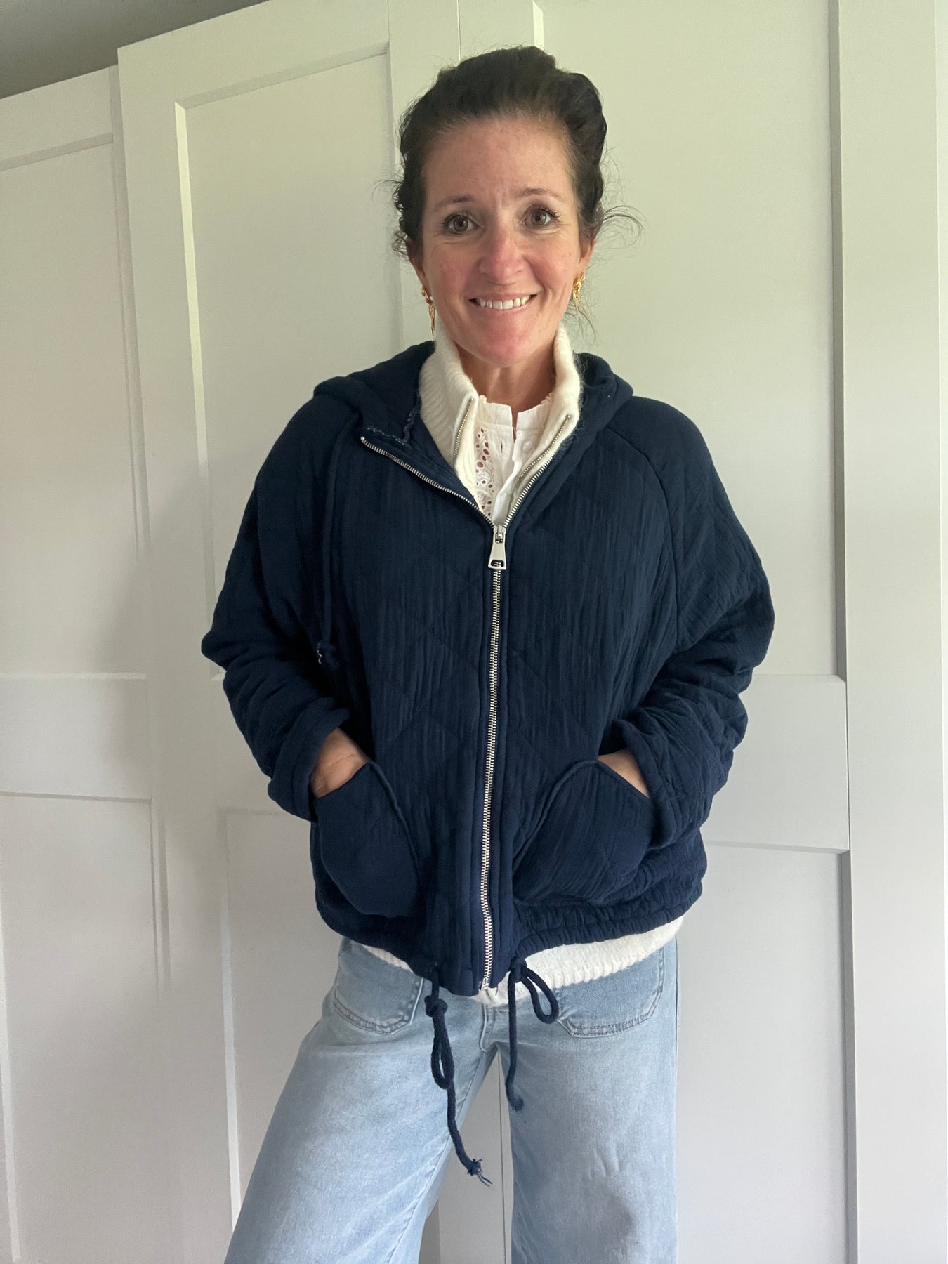 Navy Cotton Hooded Jacket