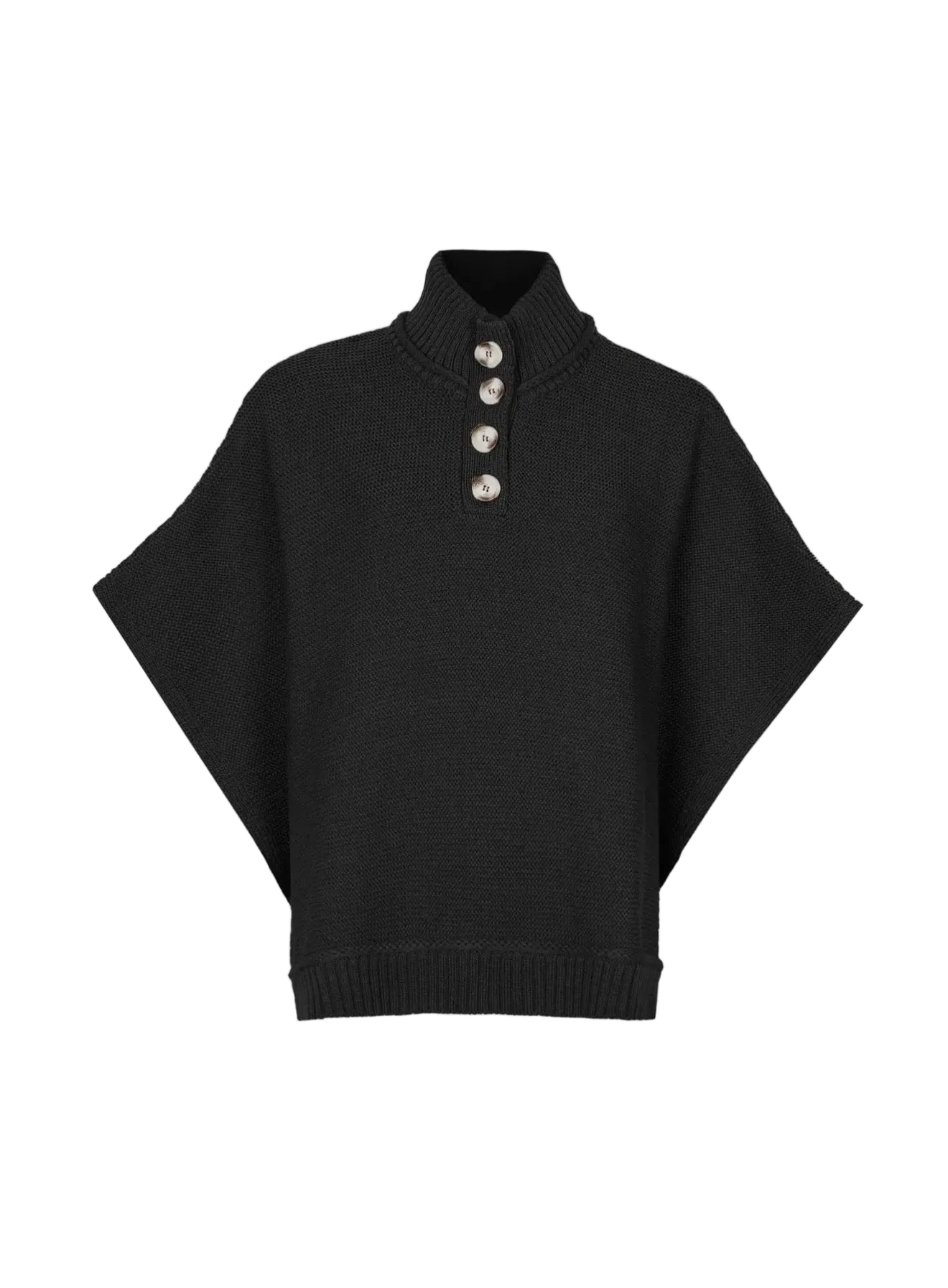 Crafted with a warm, sleeveless knit design and horn effect buttons, this poncho-style jumper offers both comfort and fashion.