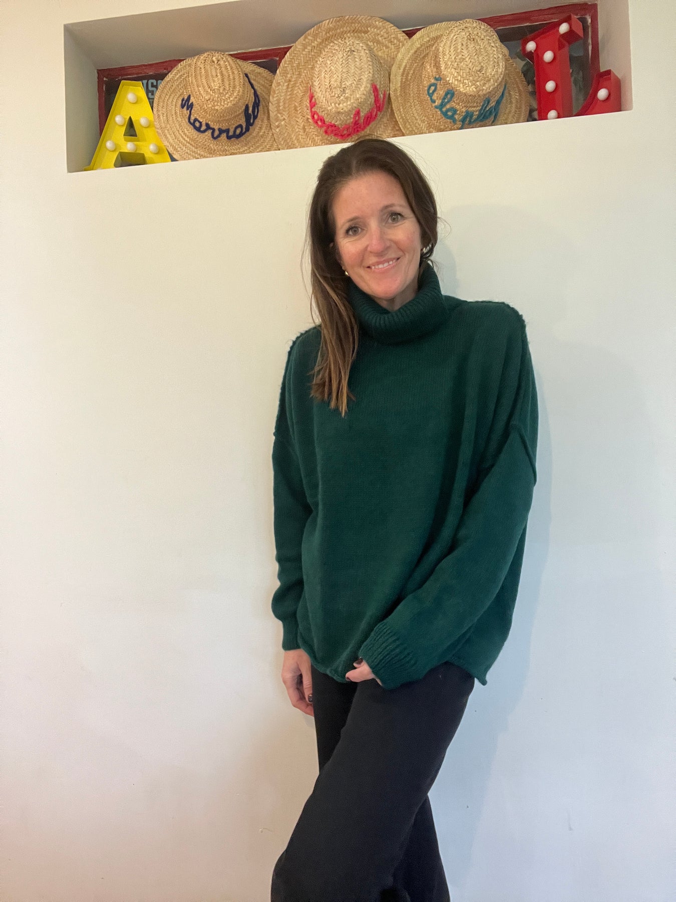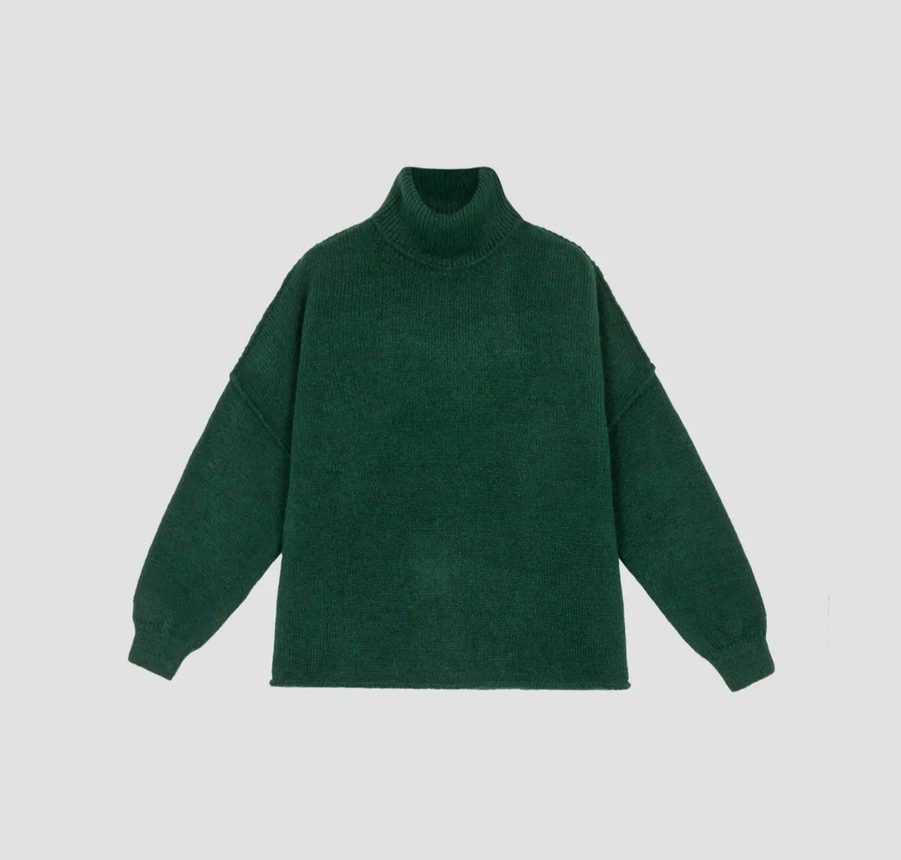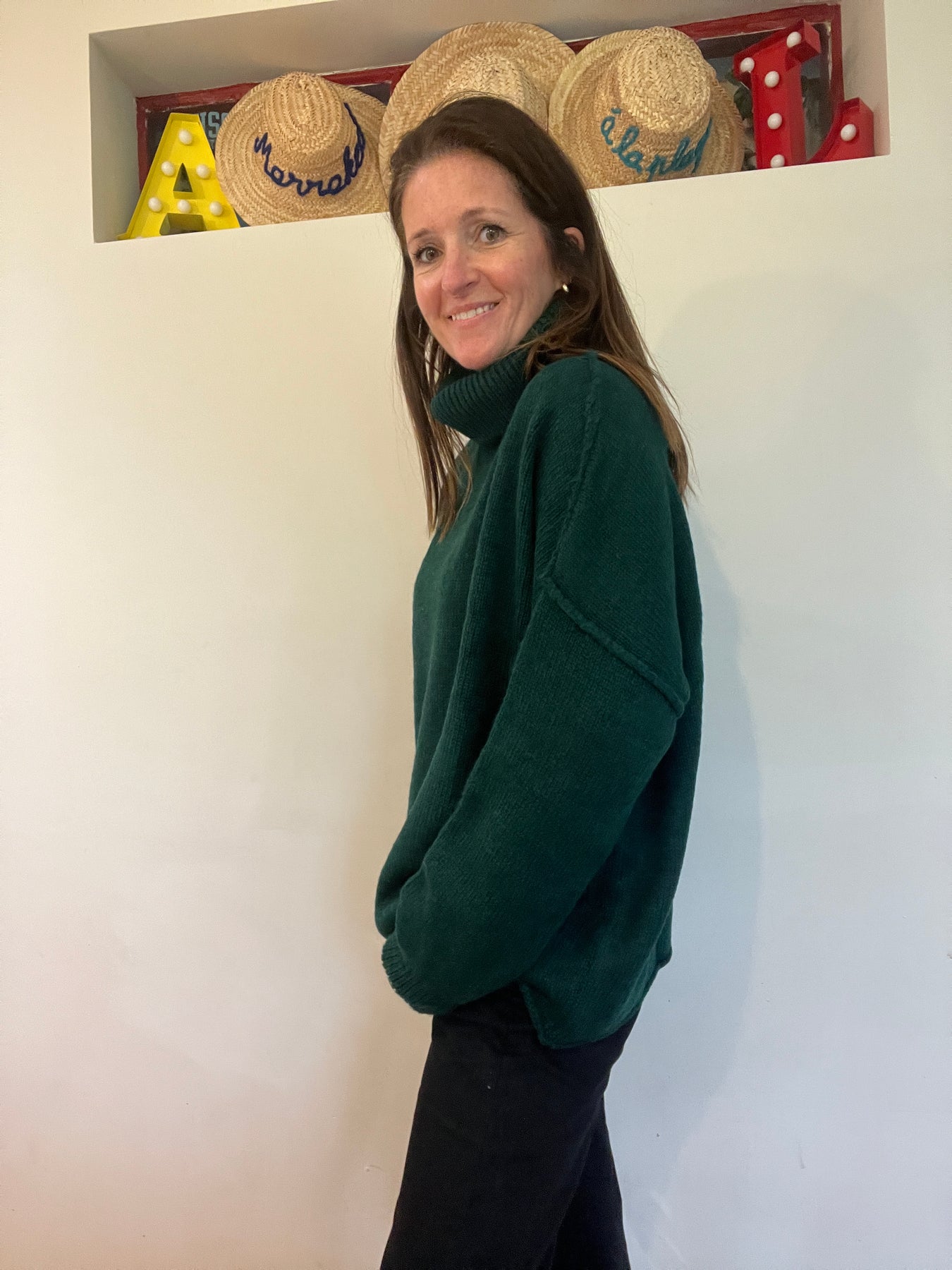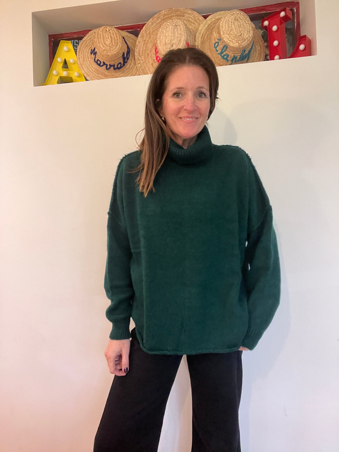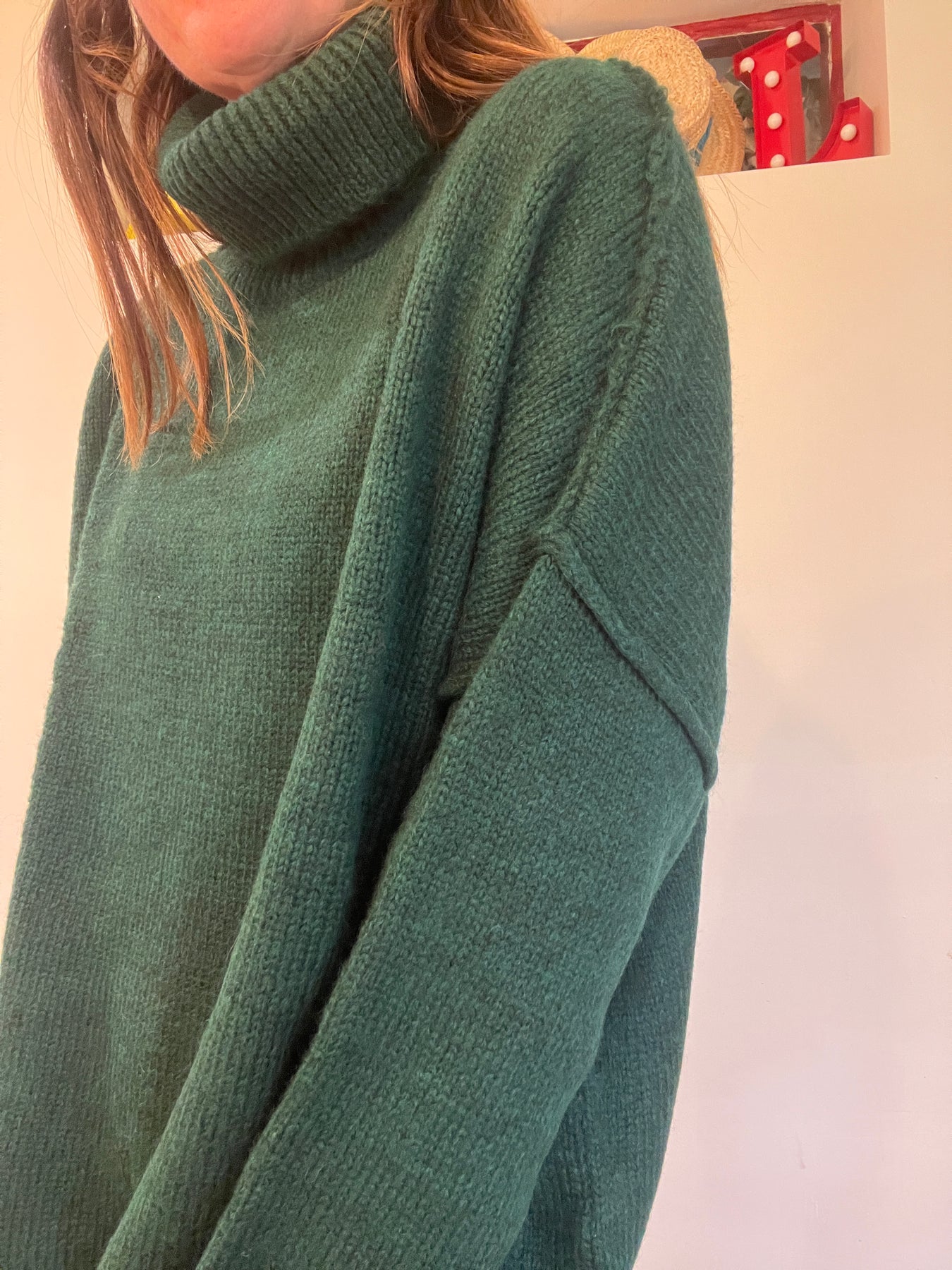 Lejoko Chunky Roll Neck Bottle Green Jumper