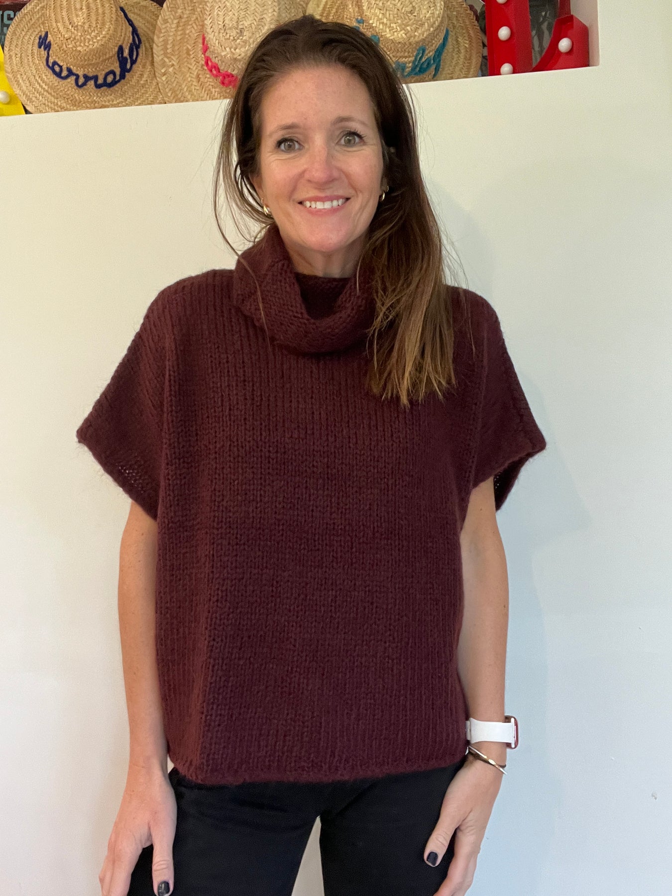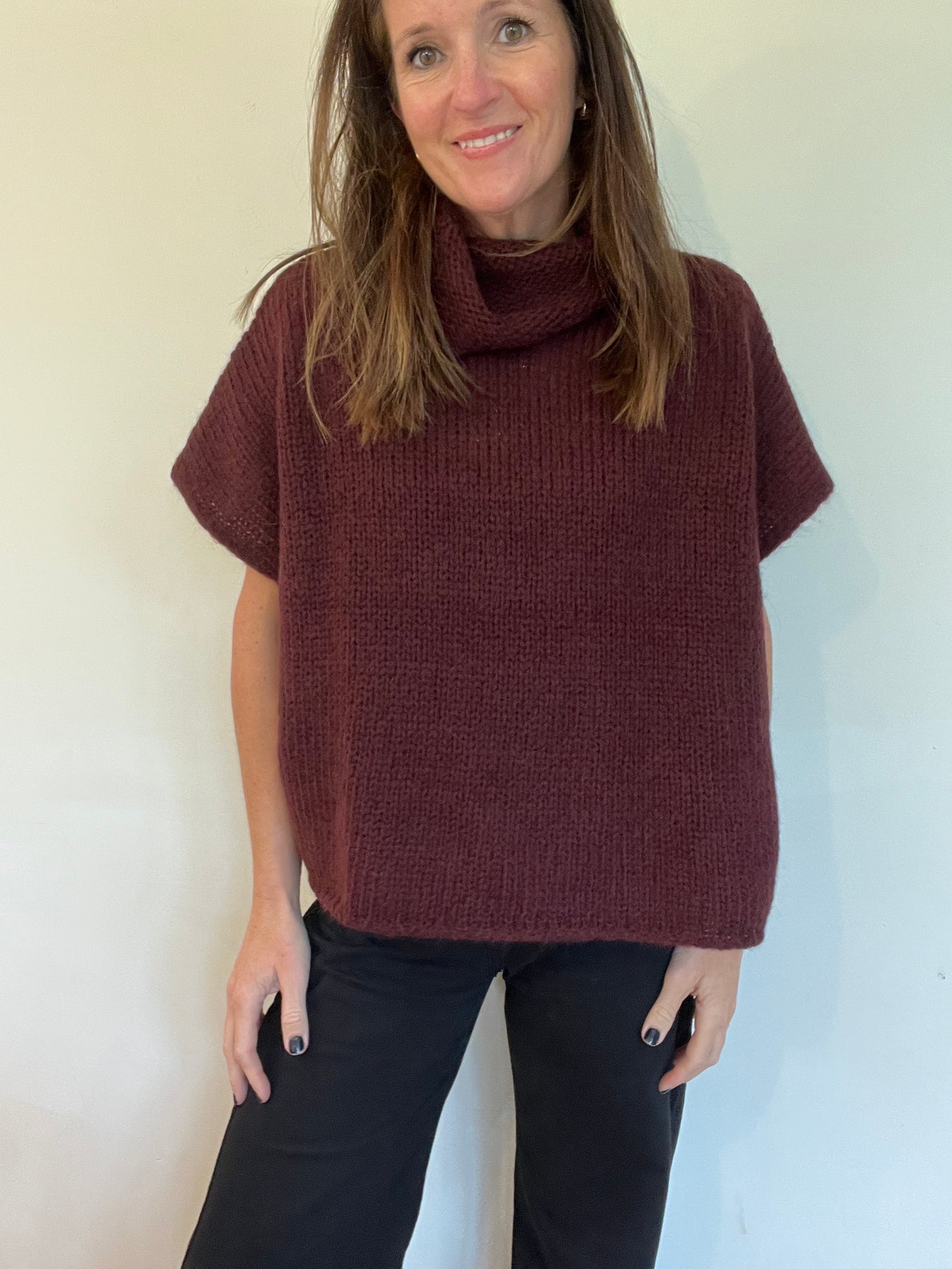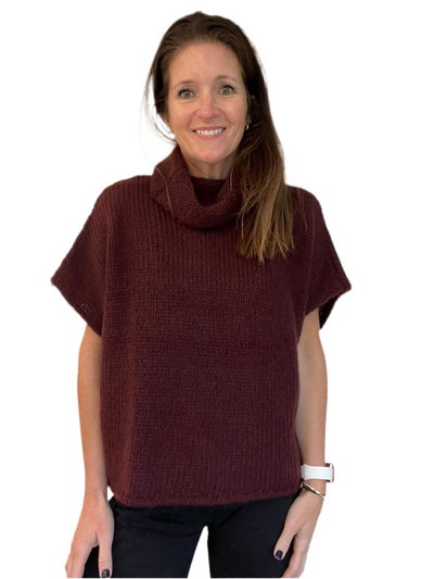 This burgundy LOKO short sleeve combines warmth and style with its oversized cozy turtleneck.