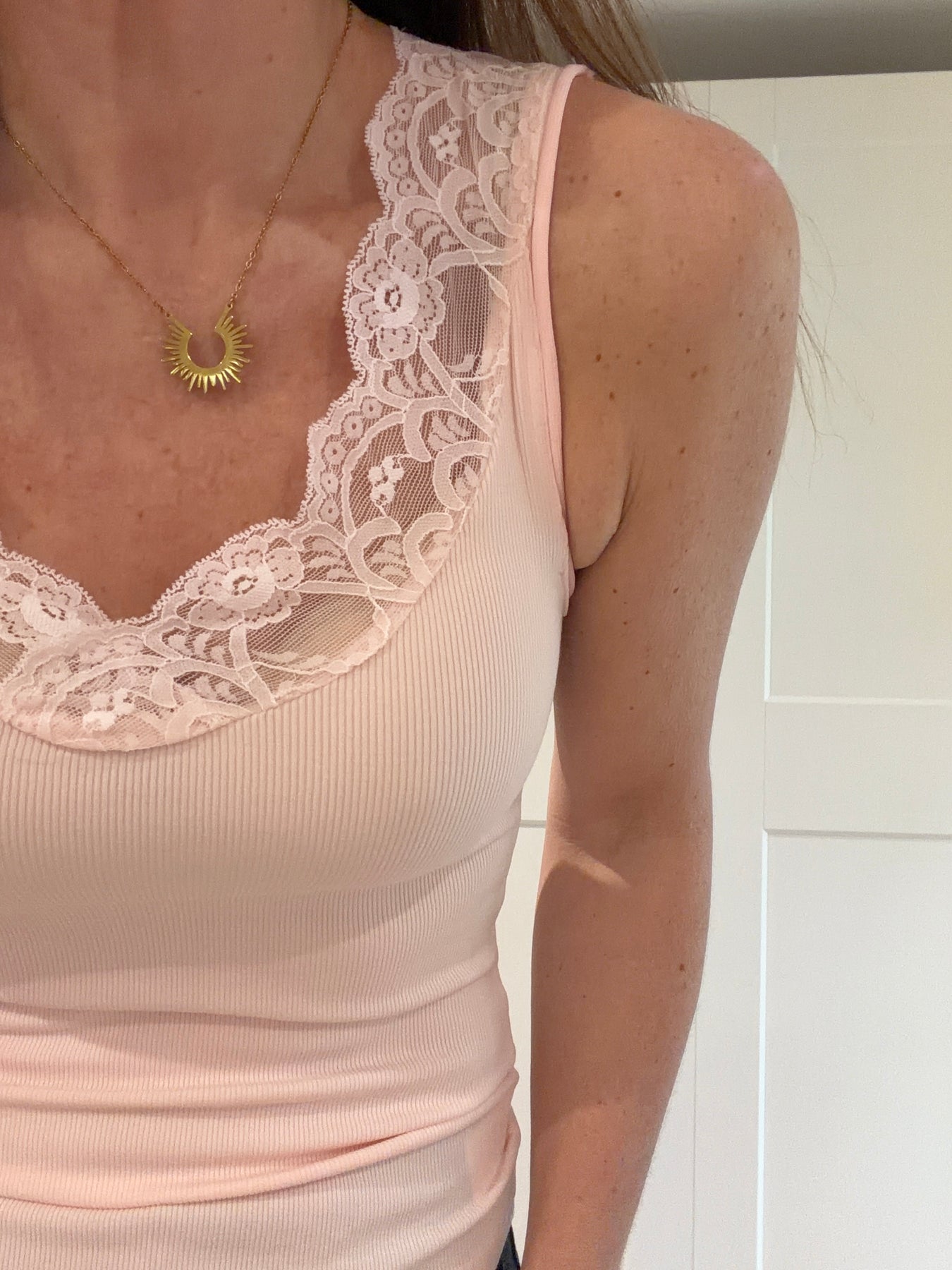 Baby Pink V Neck Lace Edge Vest