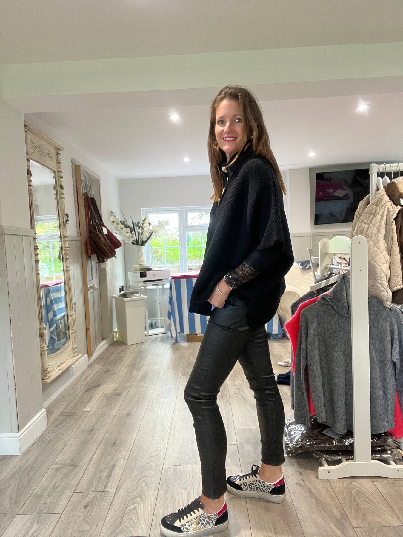 Glam up your wardrobe with some pu leather jeans. They balance out your proportions with the straight leg ankle meaning you can wear with trainers and boots