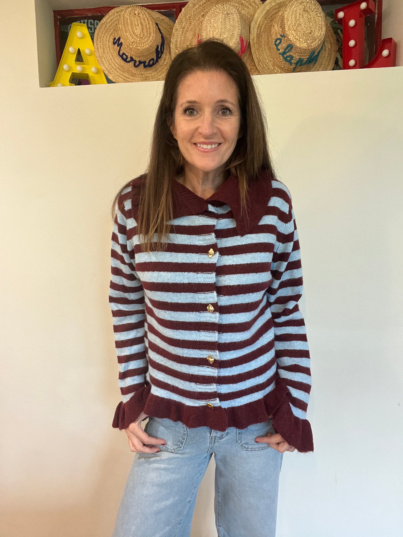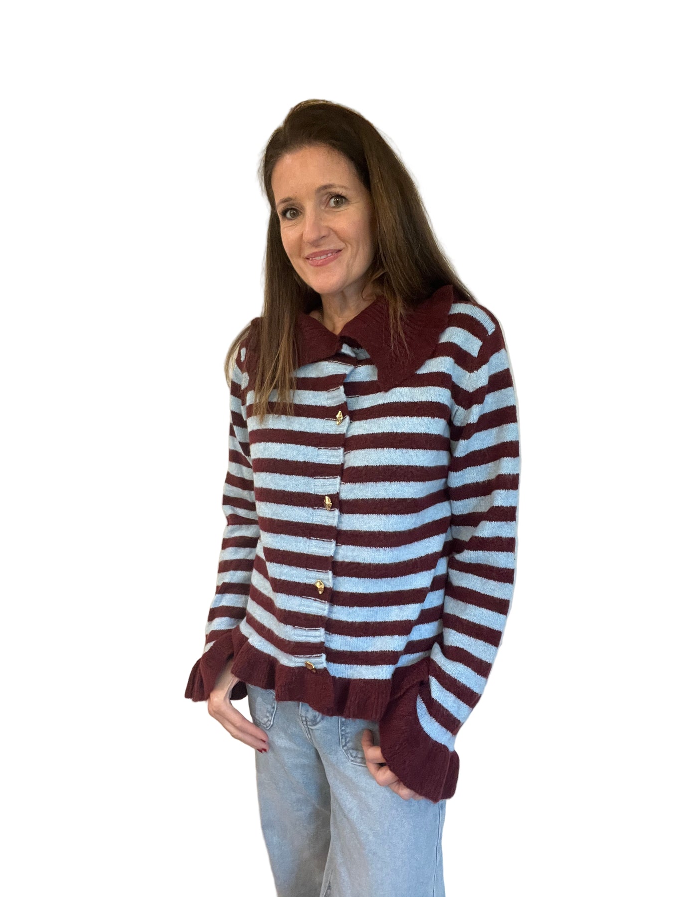 Blue & Burgundy Stripe Collared Cardigan