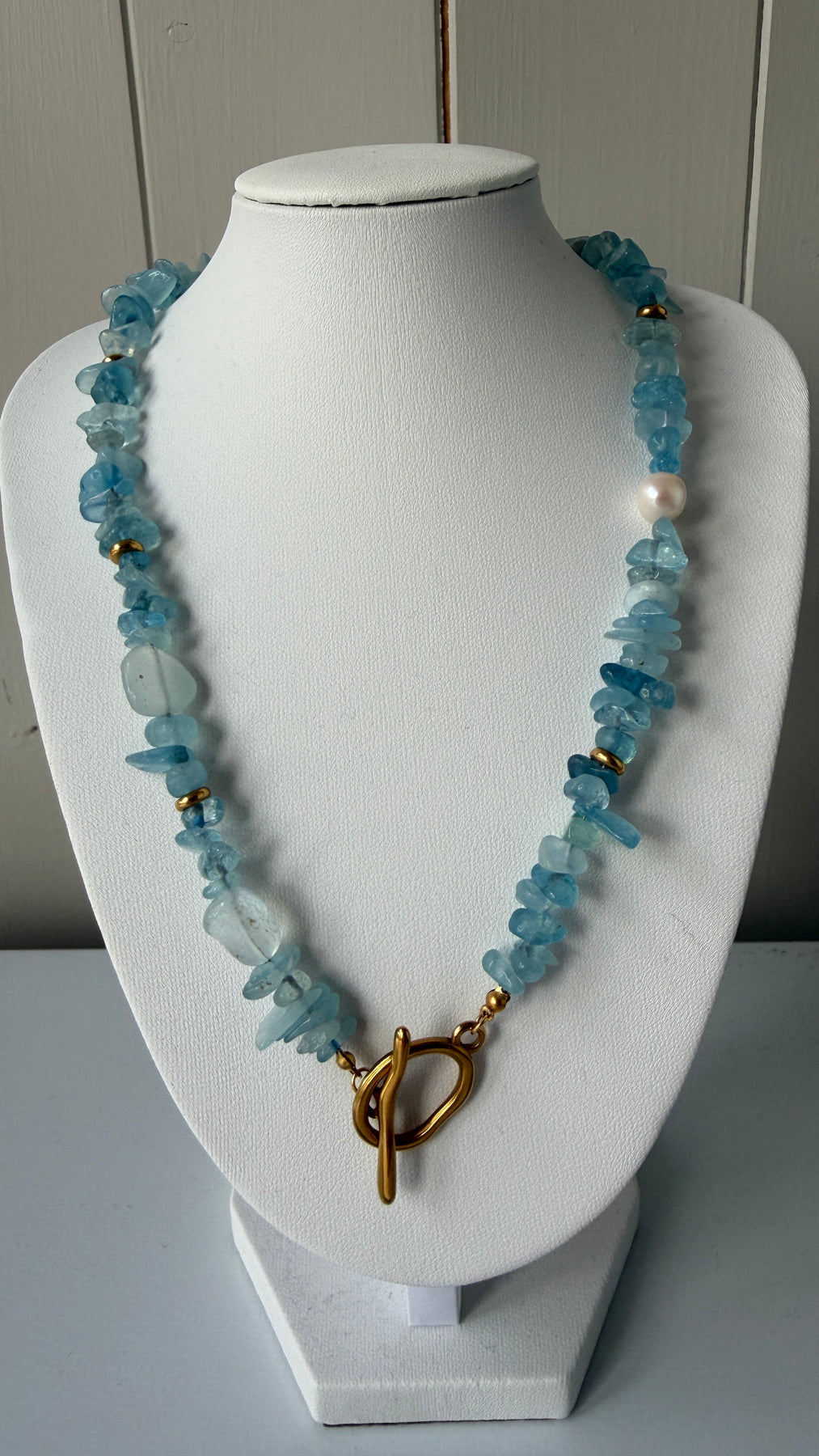 Blue Glass T Bar Beaded Necklace