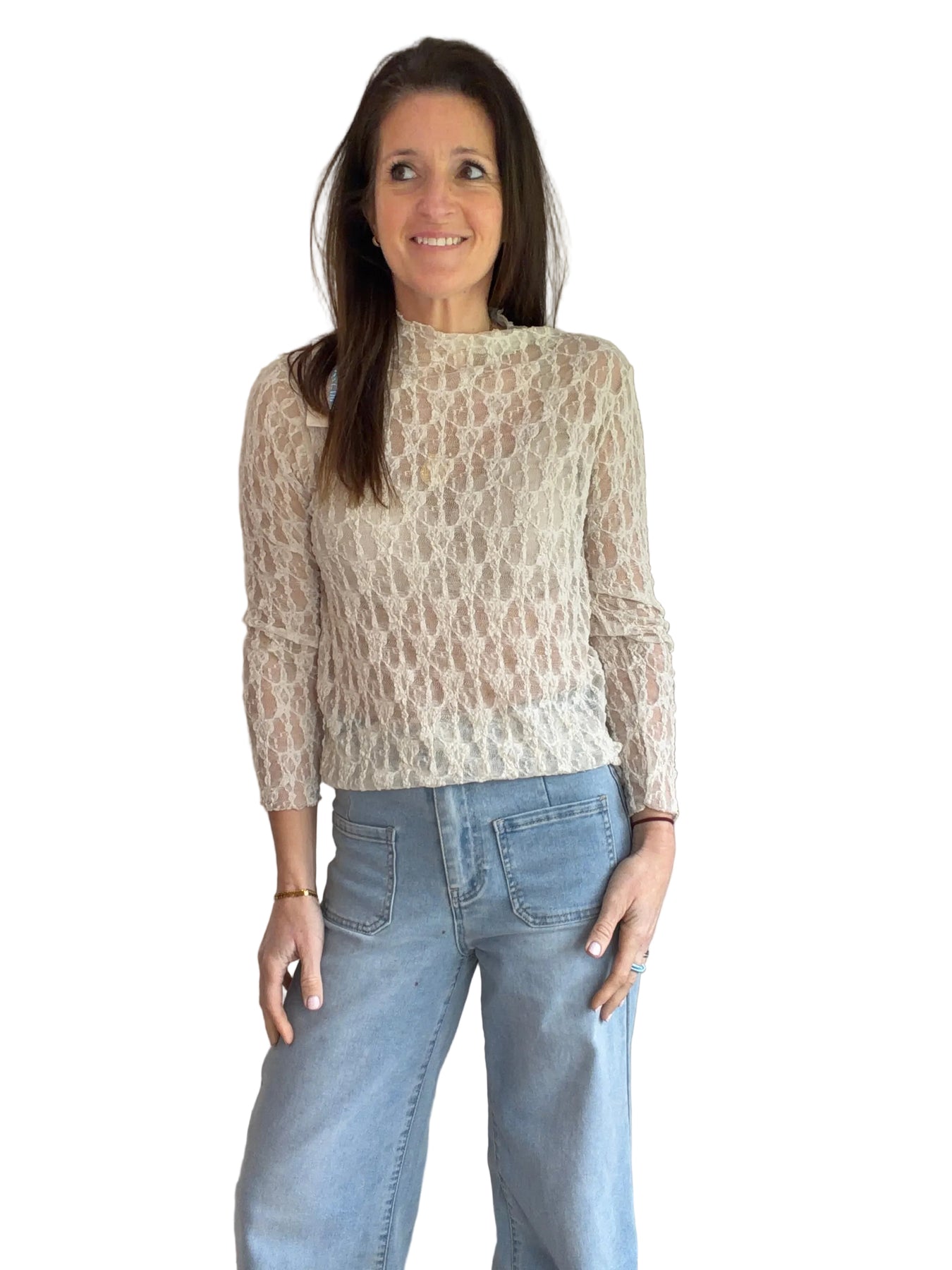 Elevate your your layering tops with this lace one, perfect under a jumper to give a glamorous finish on the cuff & neck