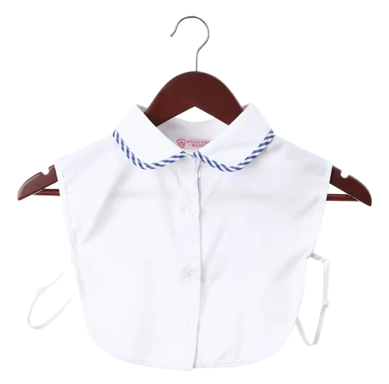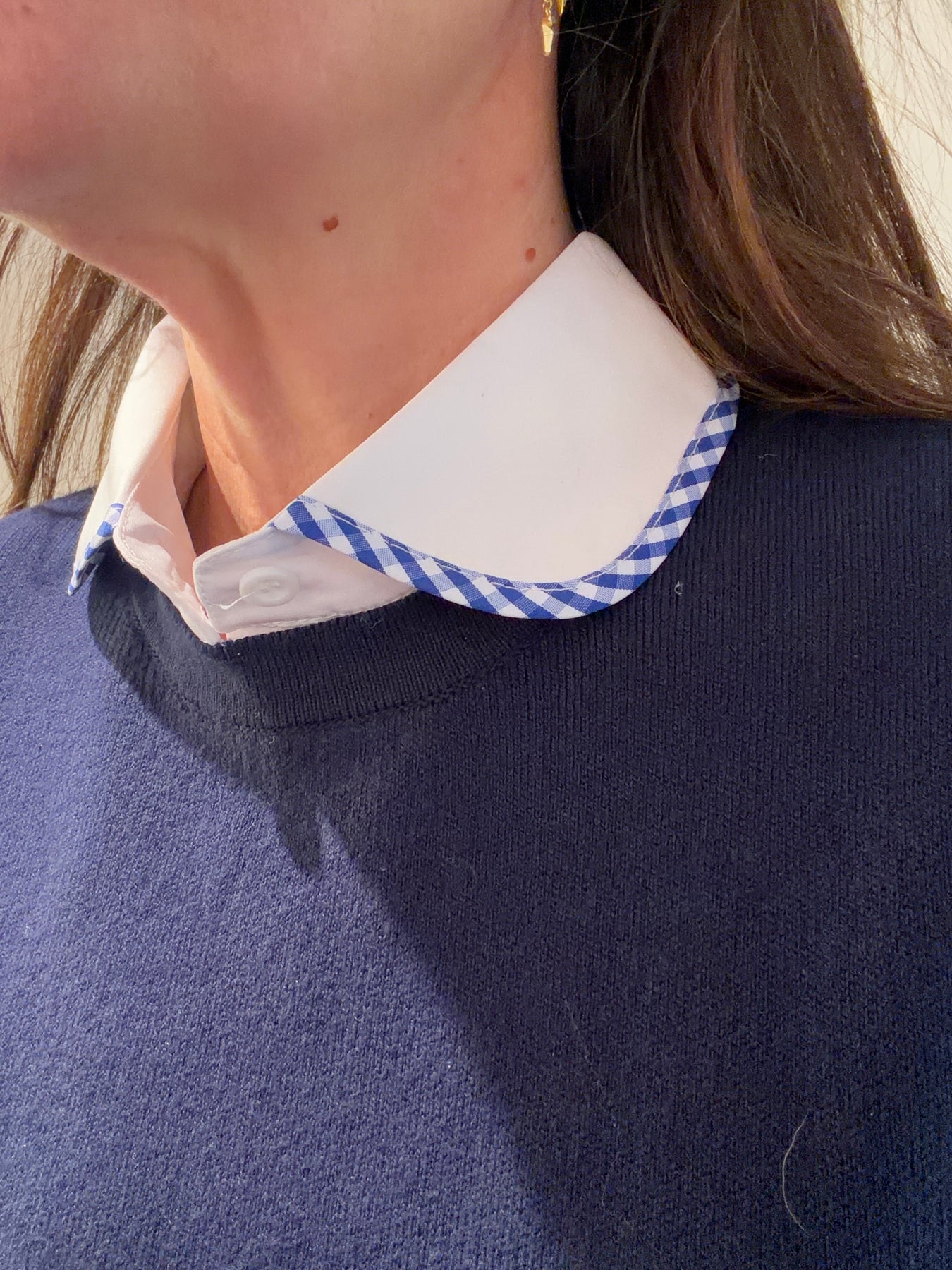 Detachable Blue Gingham Trim Peter Pan Faux Collar