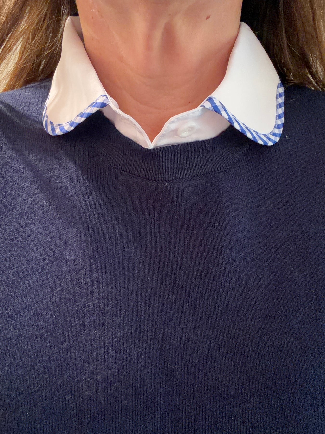 Go back to basics with this faux collar that will look smart beneath any colour jumper.