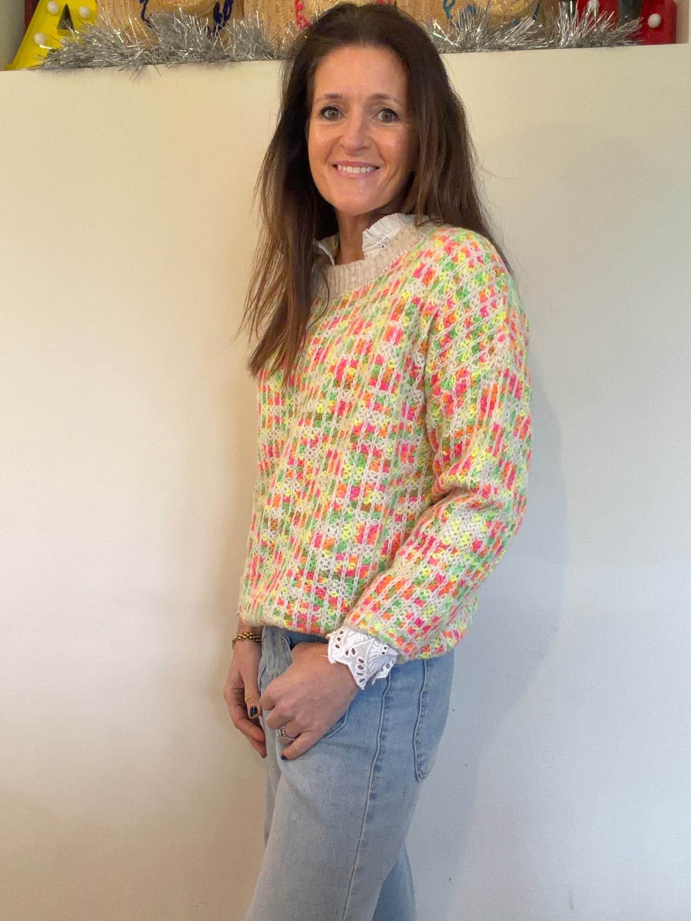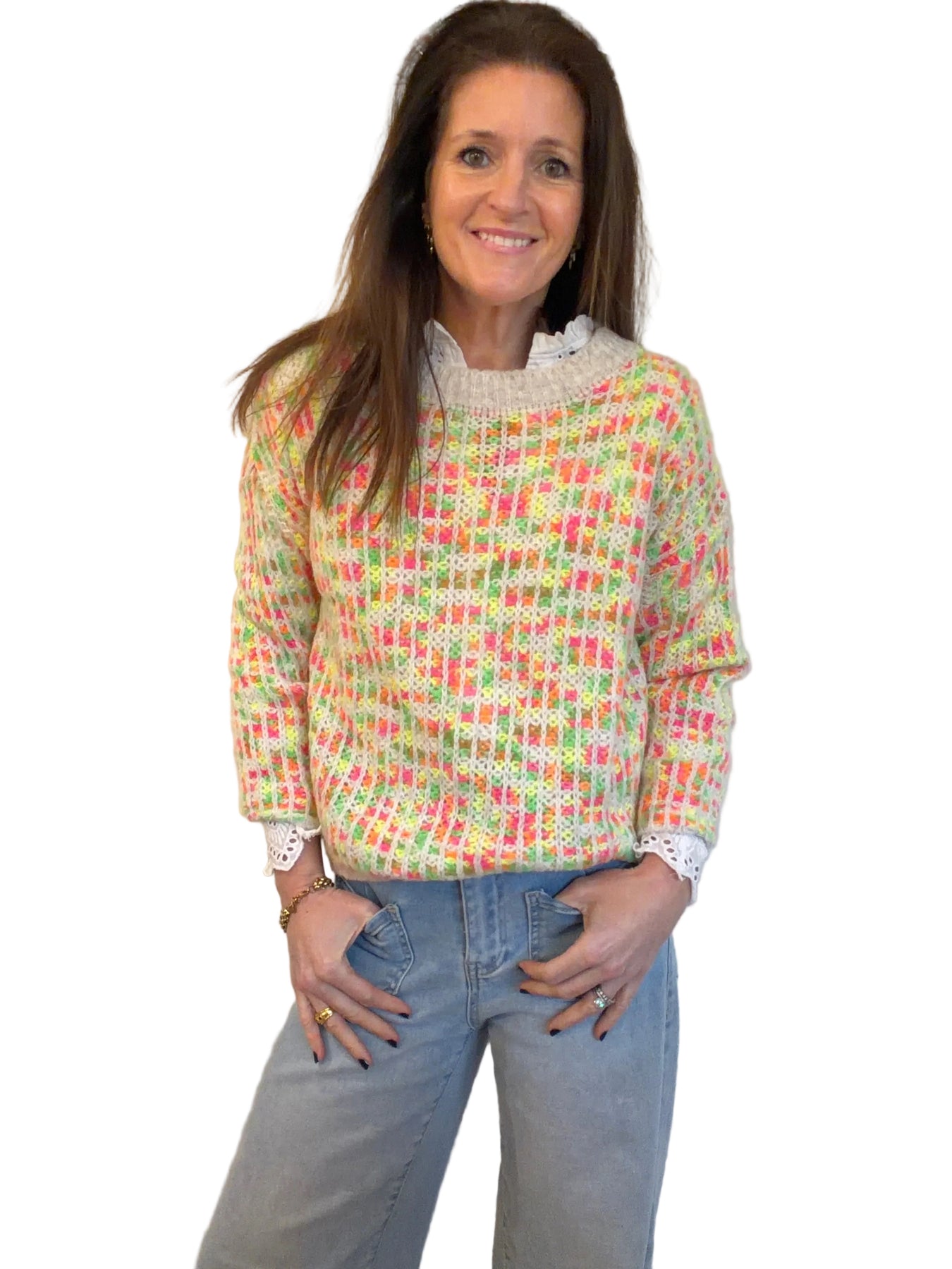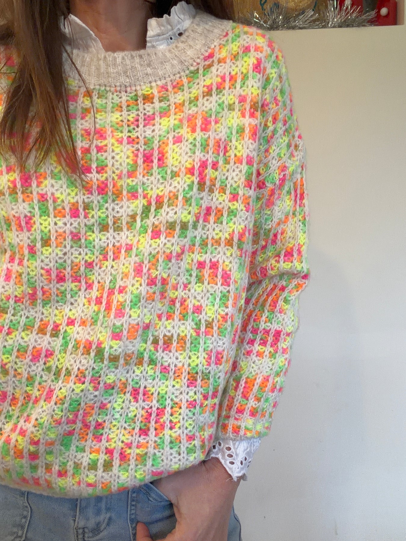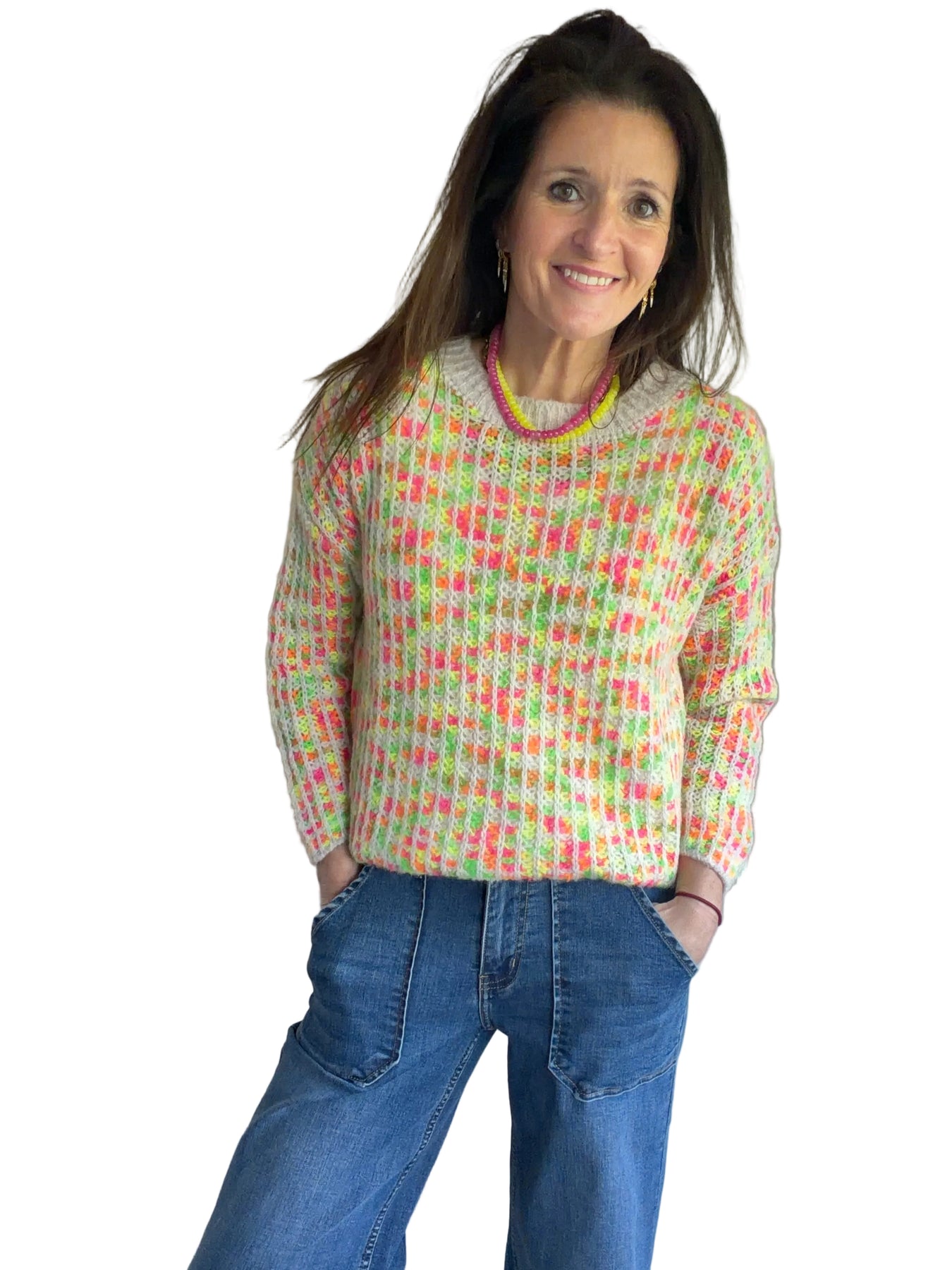 Neon Open Knit Waffle Jumper
