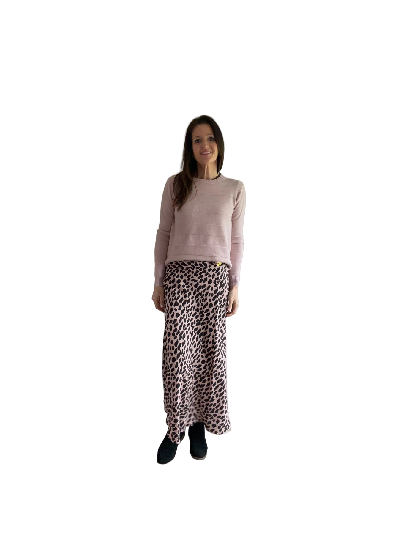 Pale Pink Animal Print Midi Skirt