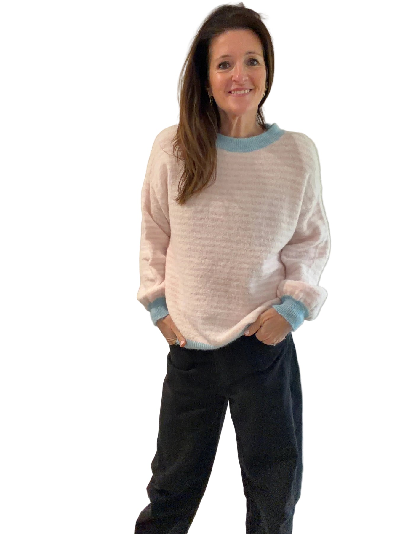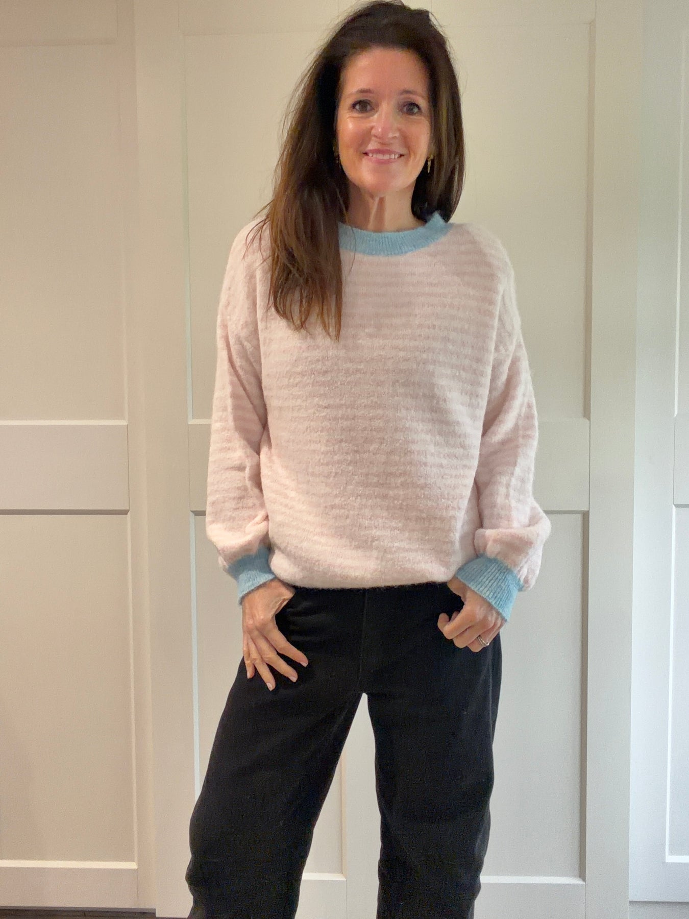 Nod to Spring in this gorgeous pastel slouchy stripe jumper with contrasting collar & cuff