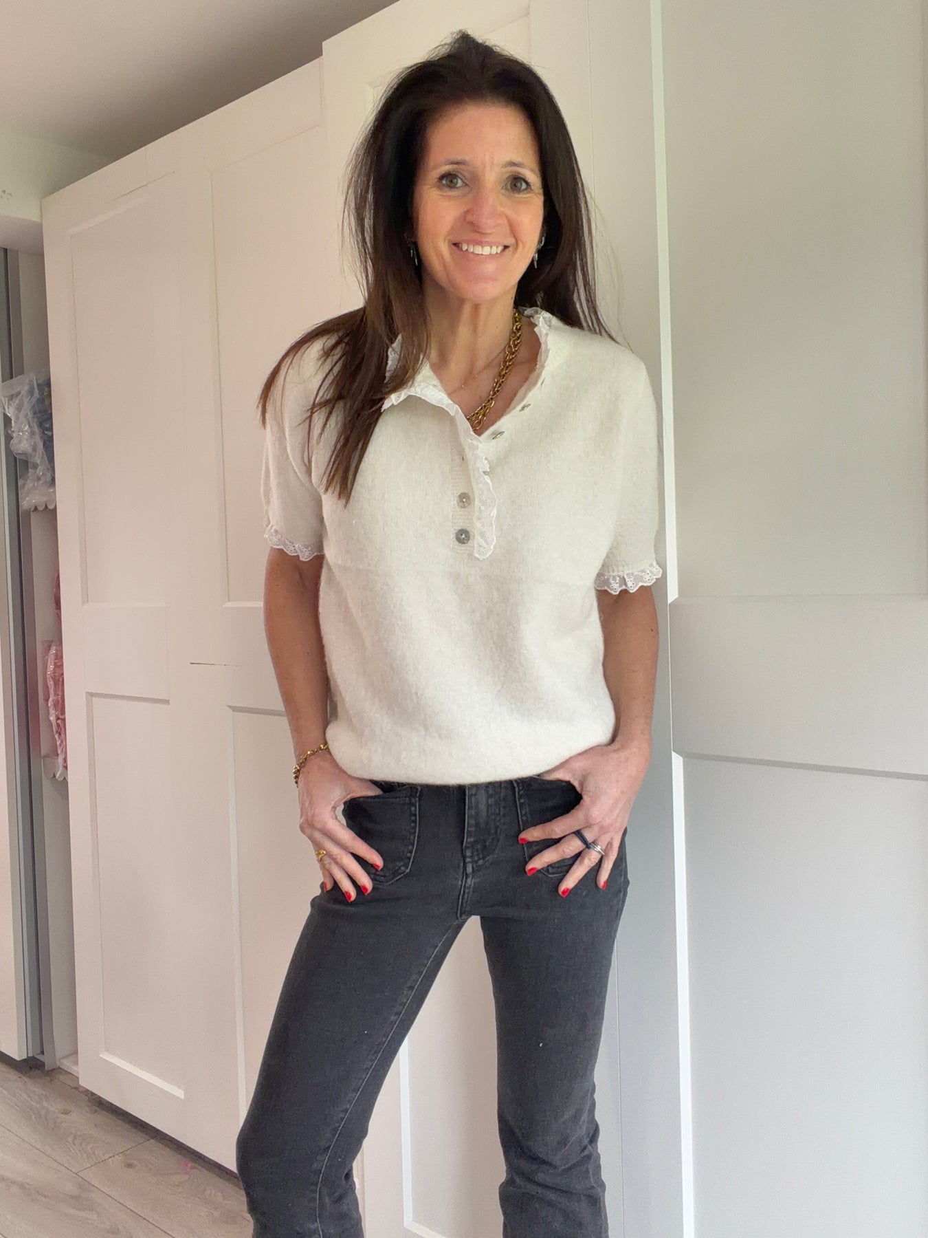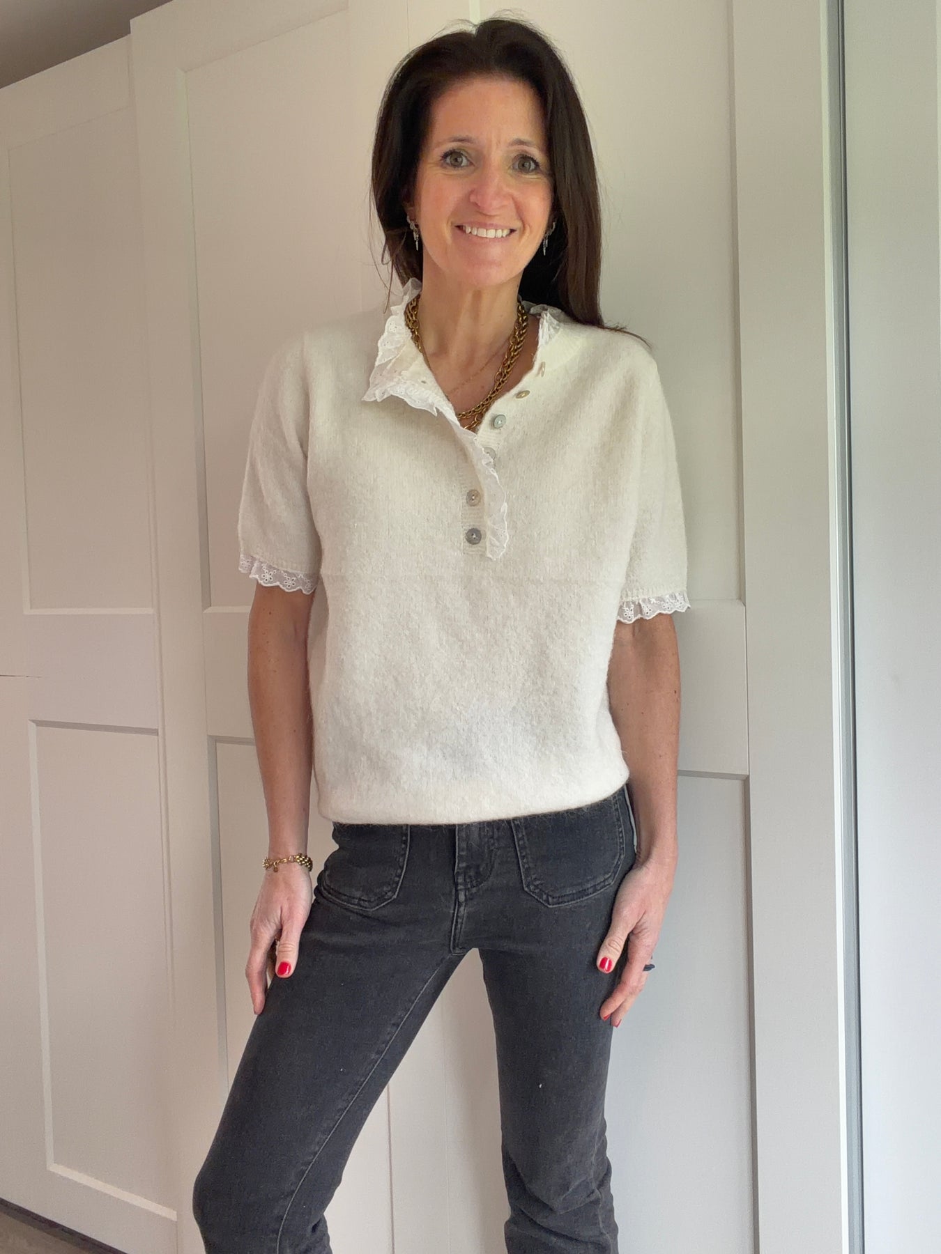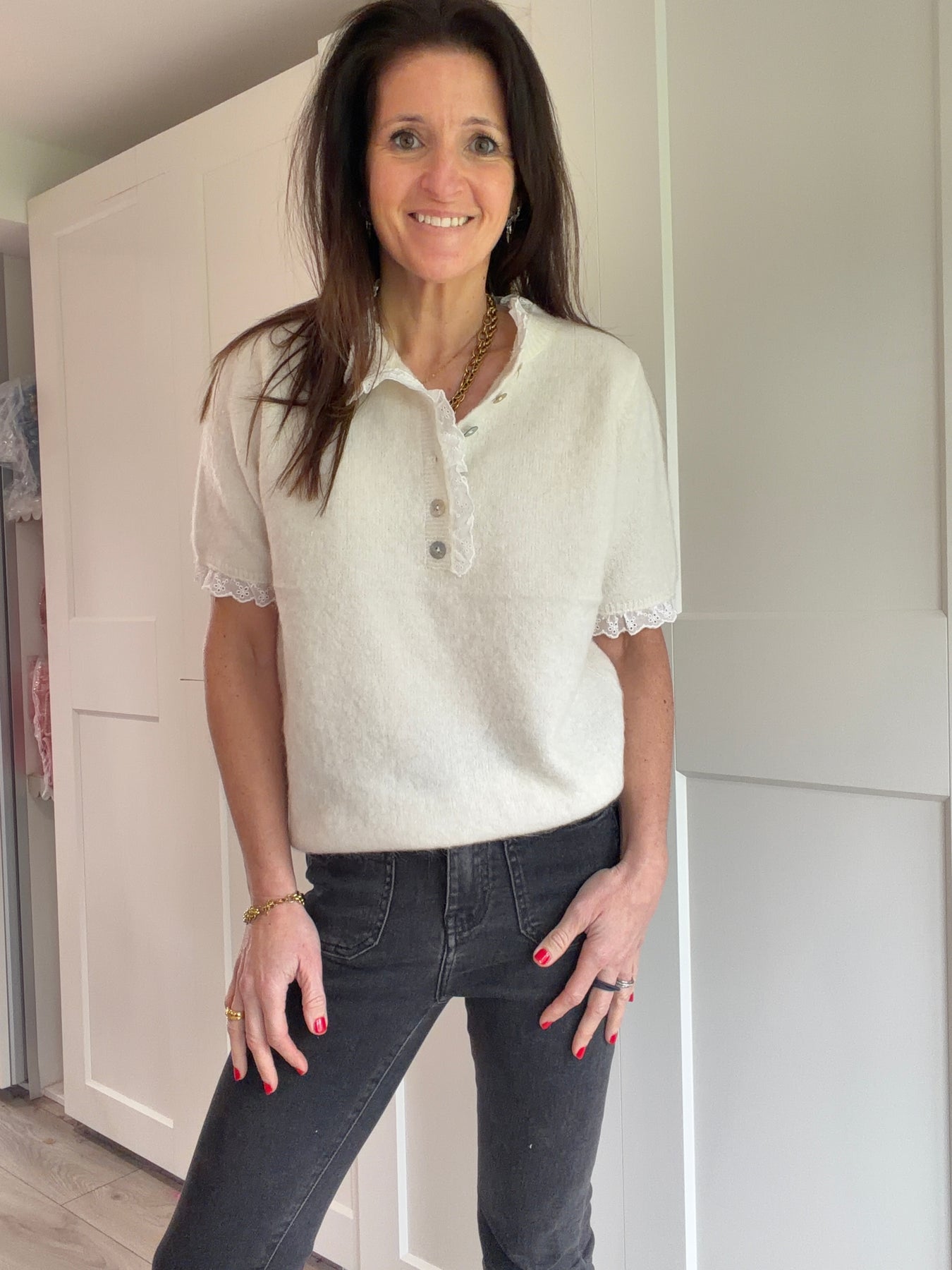 Short Sleeve Broderie Collar & Cuff Cream Jumper