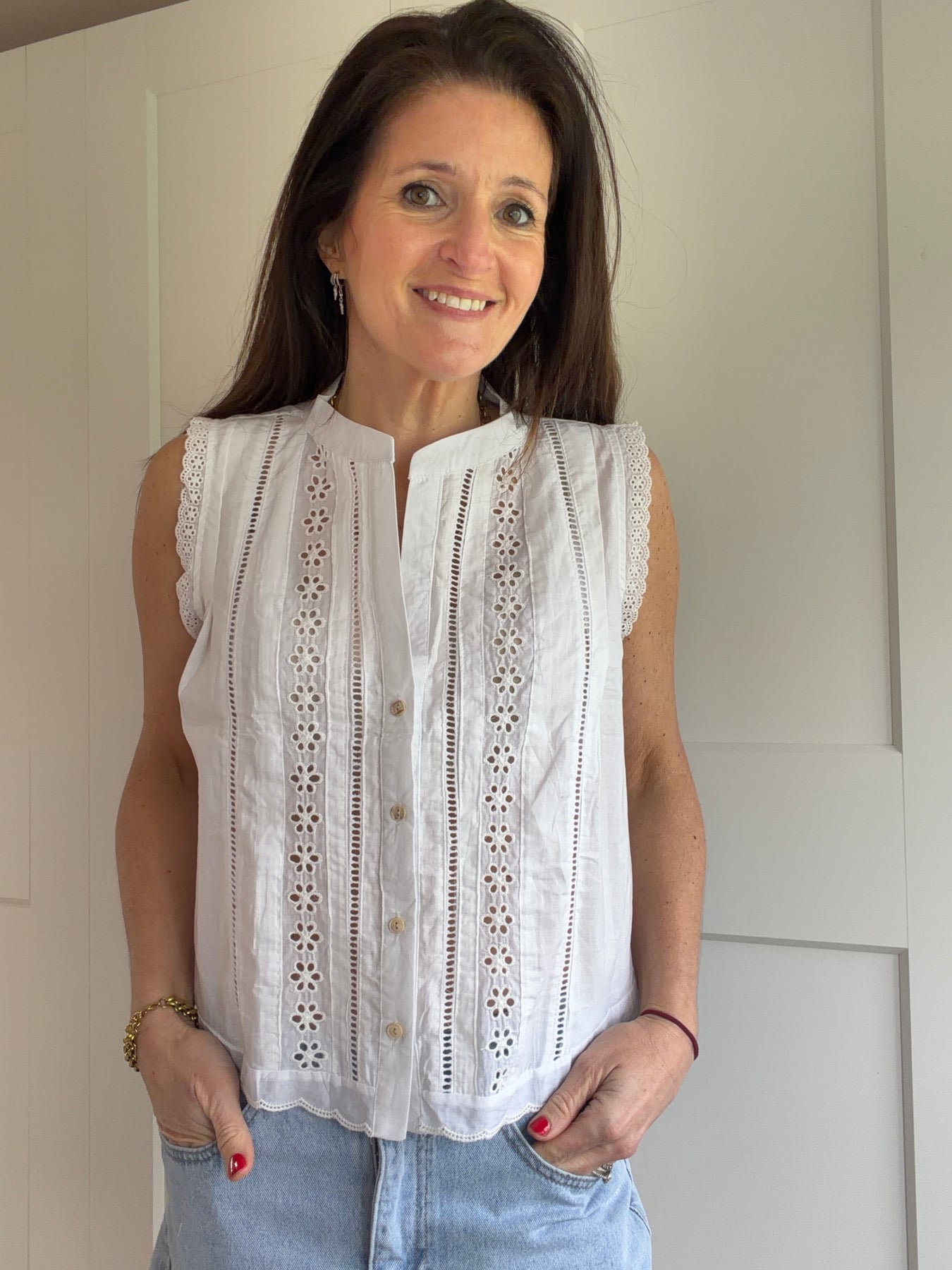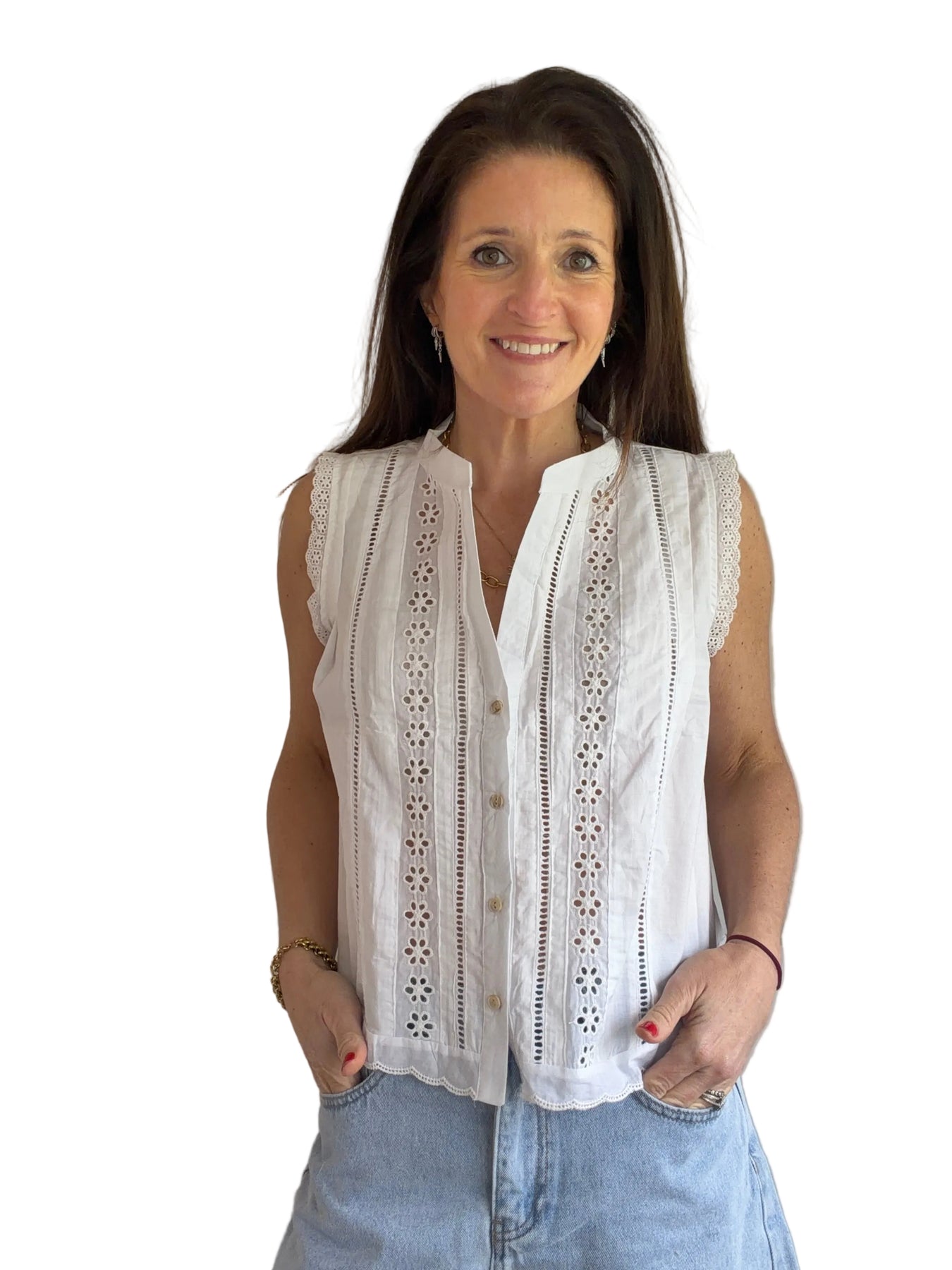 Tati White Button Down Sleeveless Blouse