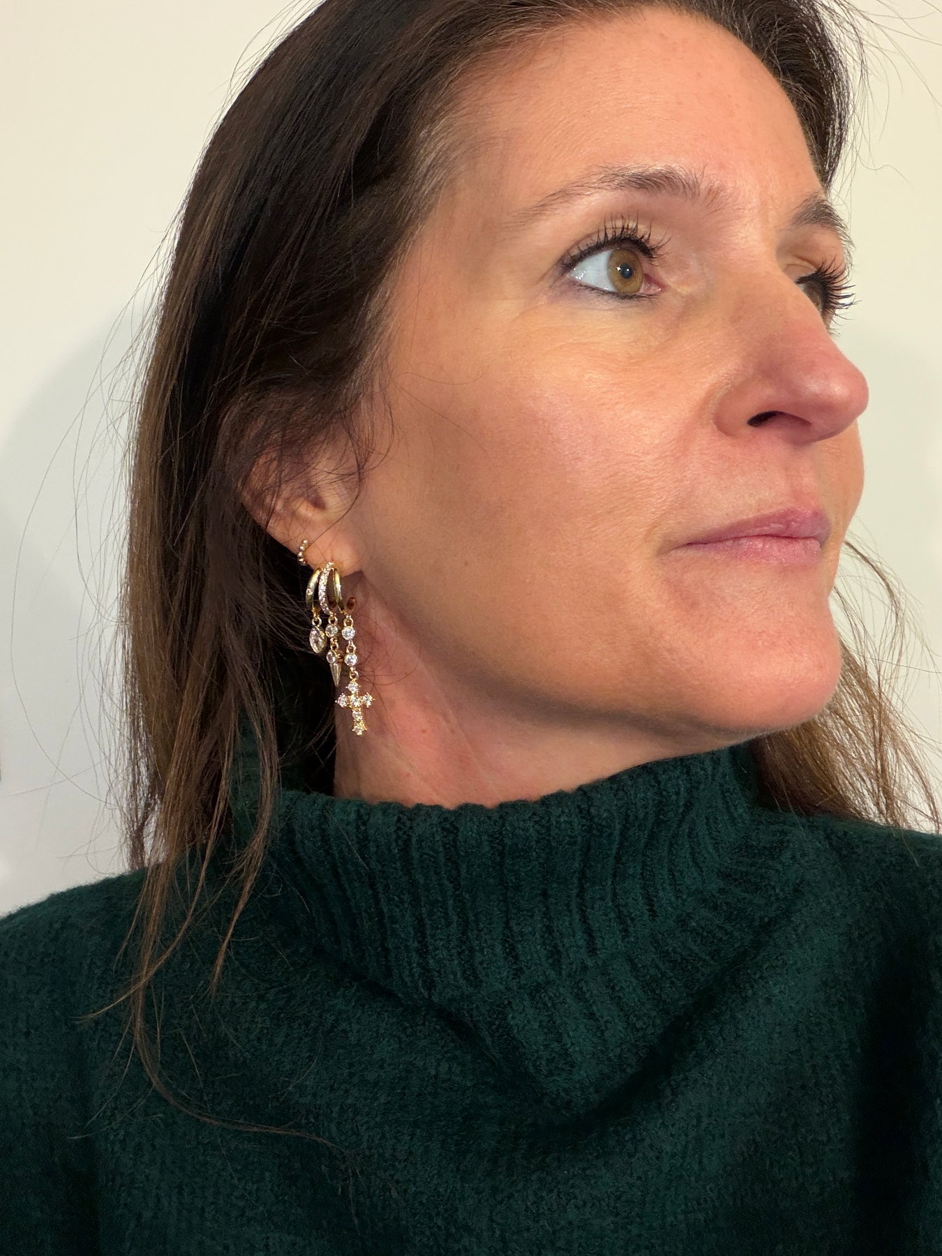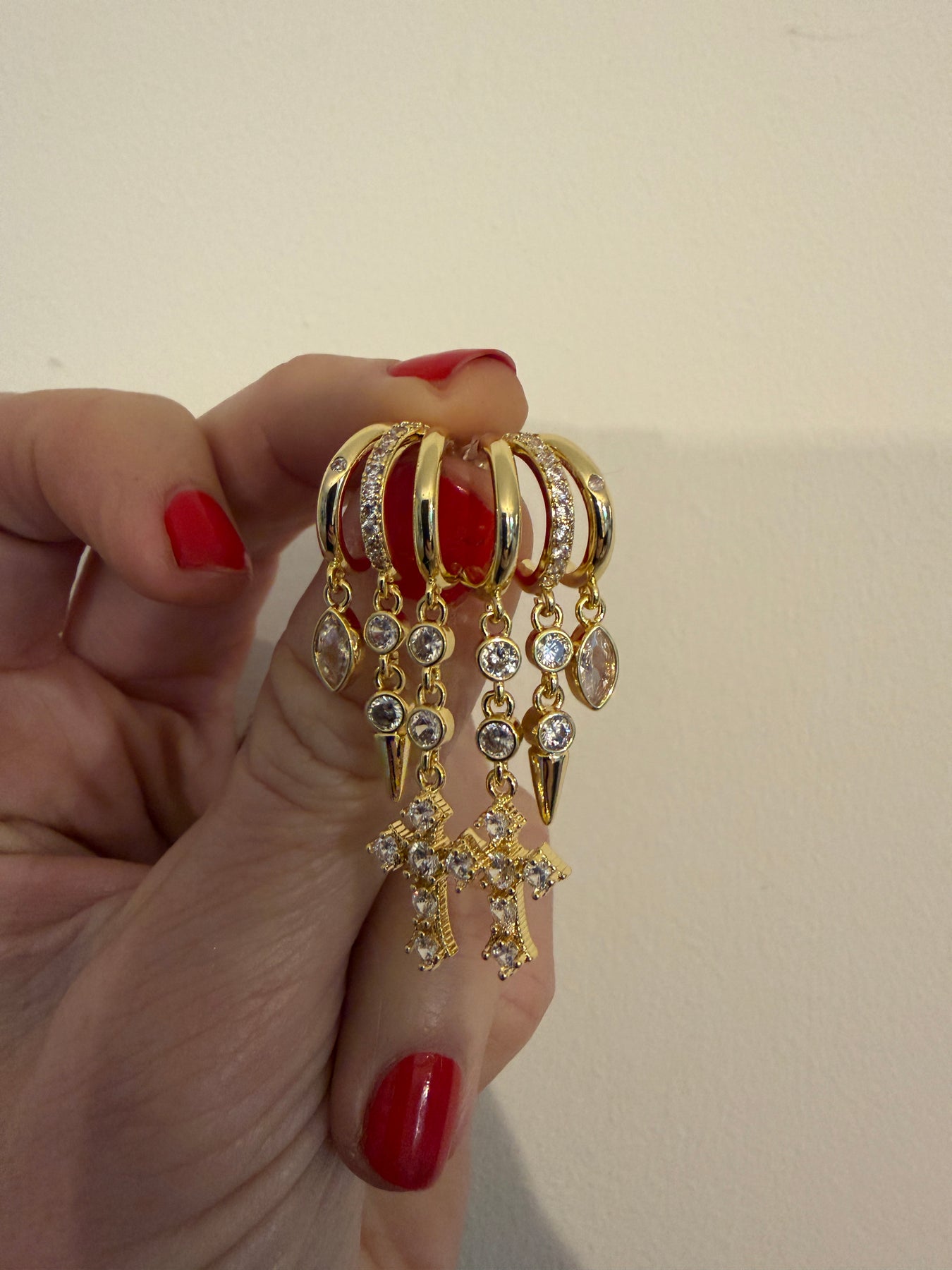 The Grand Tripler Diamante Drop Illusion Earrings with Cross