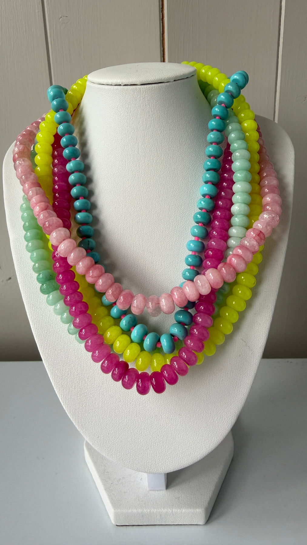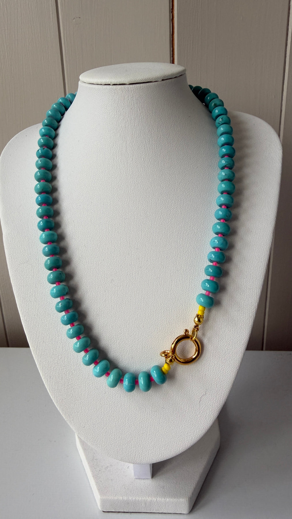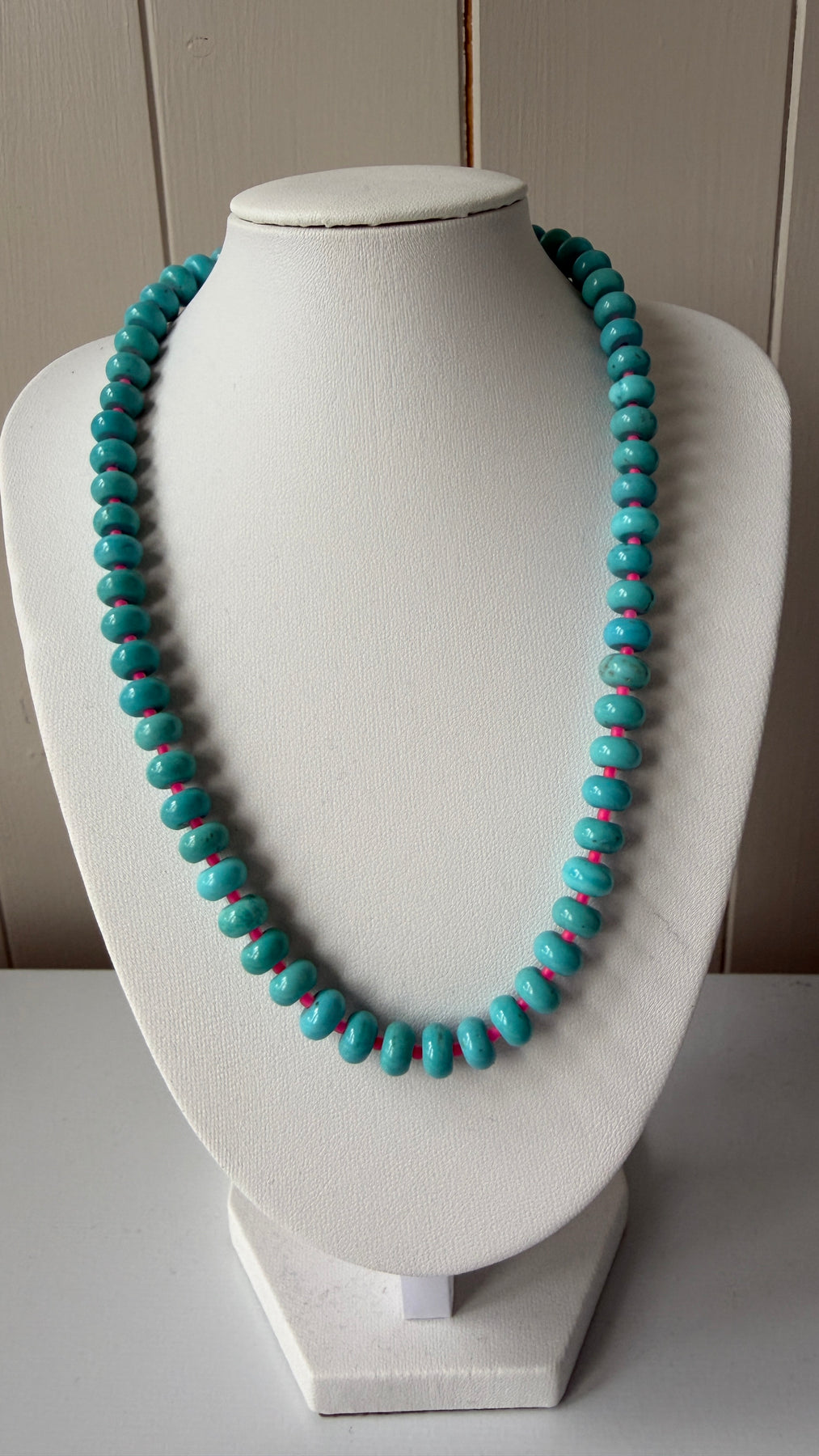 Turquoise Bead Glass with Neon Pink String Necklace