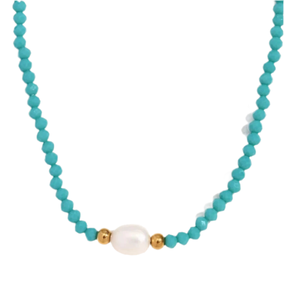 Turquoise Beaded Necklace with Freshwater Pearl