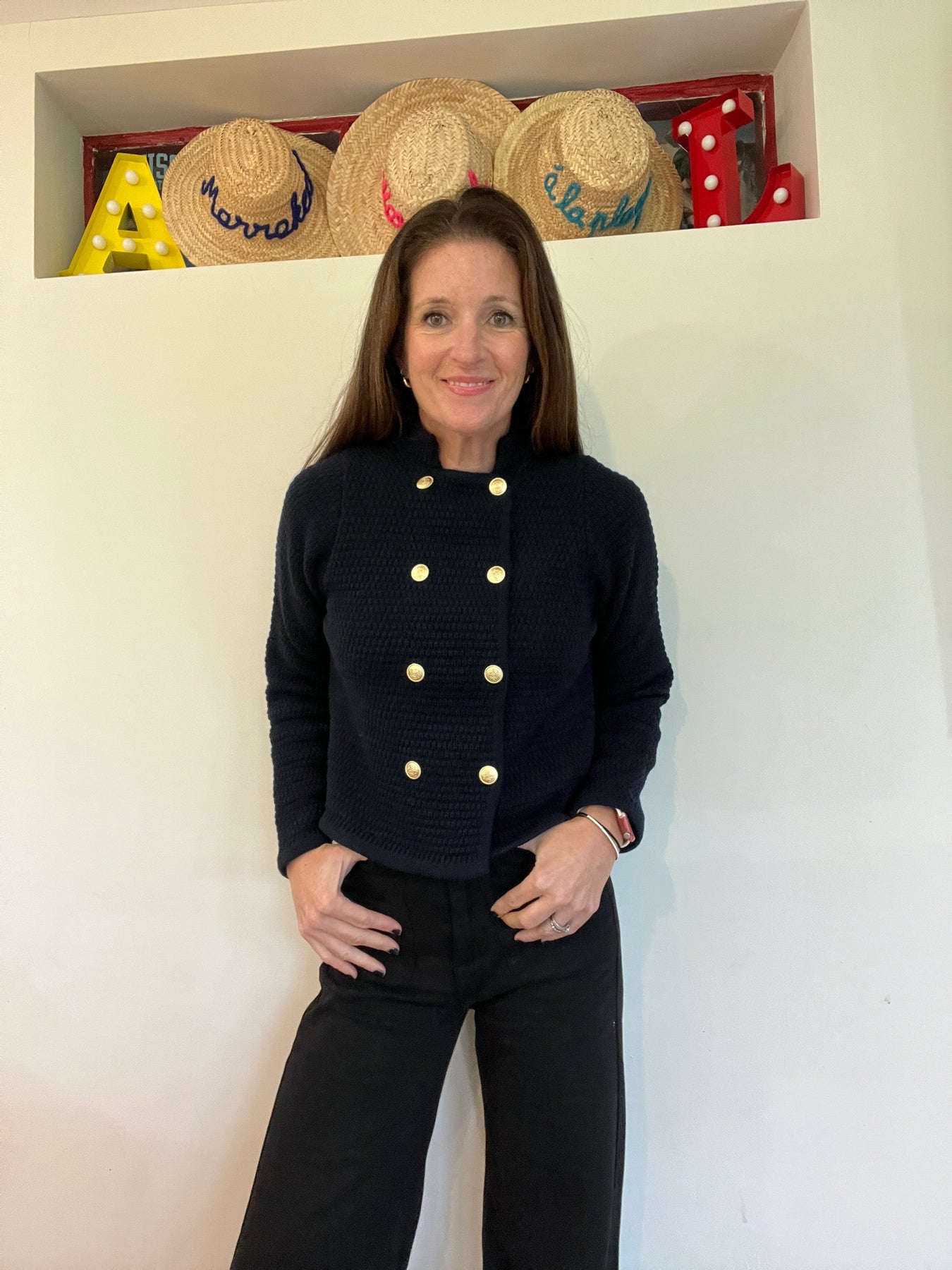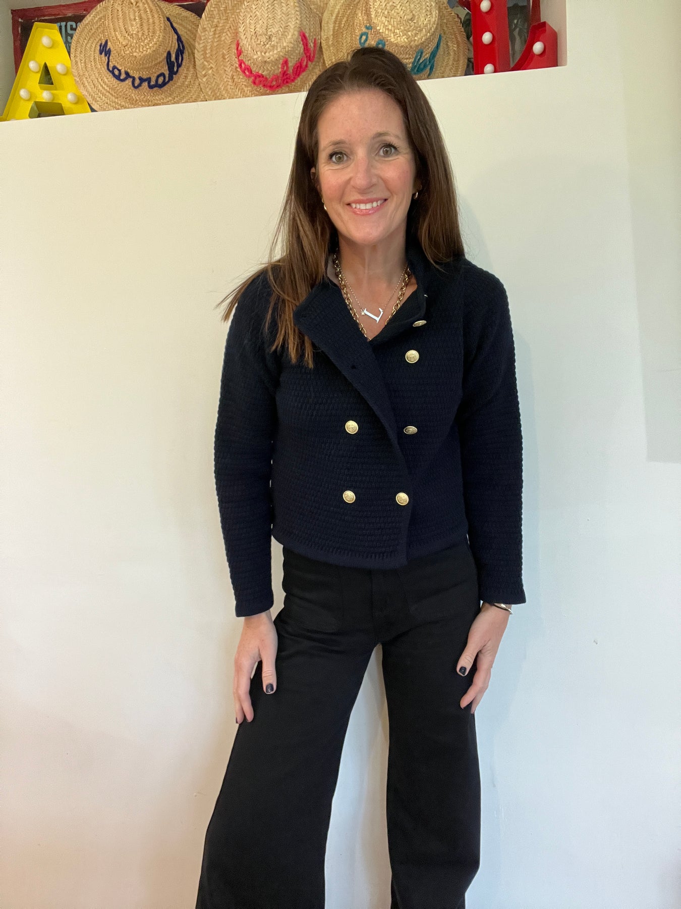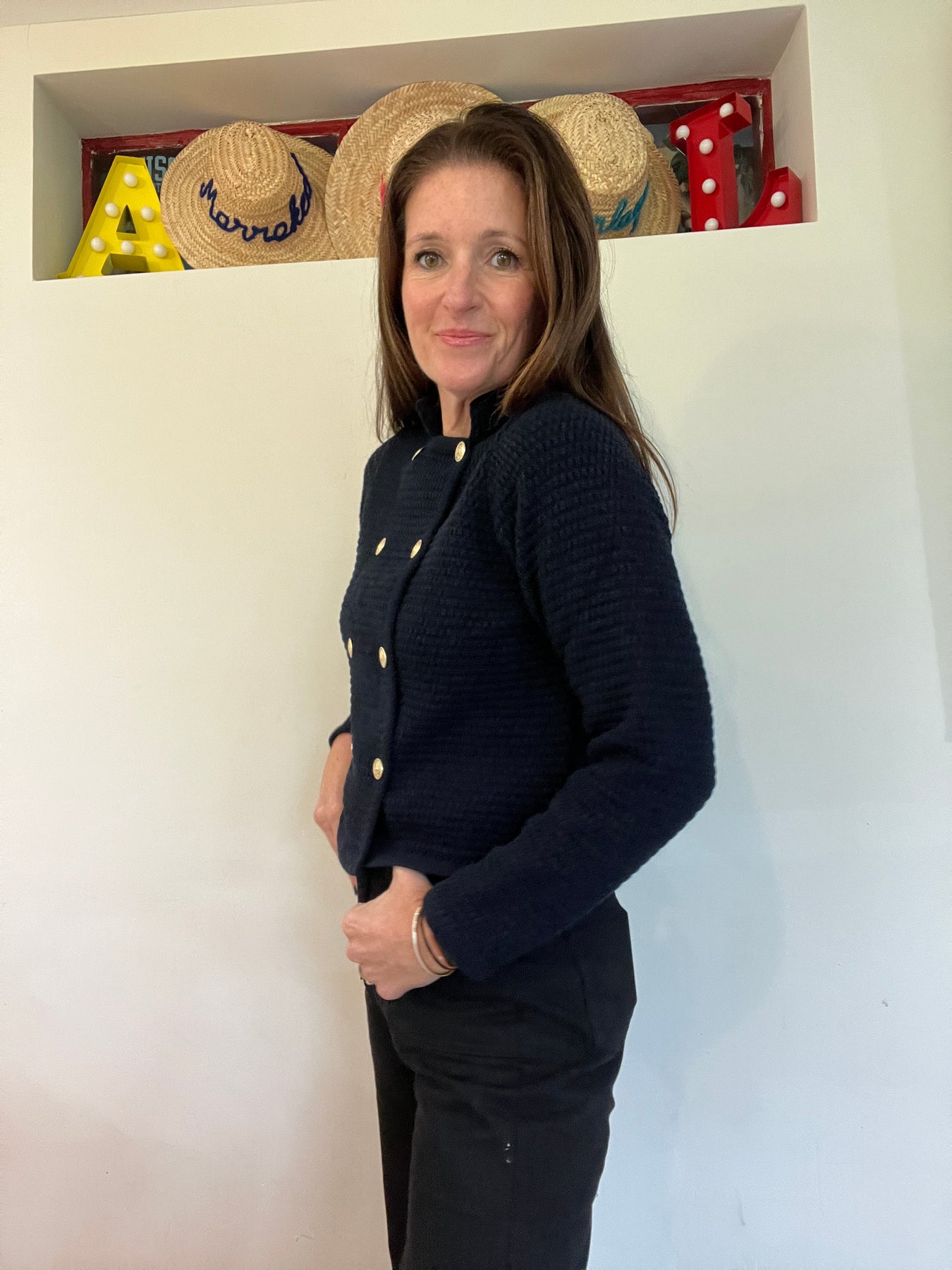 Stay warm and stylish with our Navy Double Button Coatigan. The high collar and fitted cut provide a chic and effortless look, while the warm knit and fancy stitch add a touch of luxury.